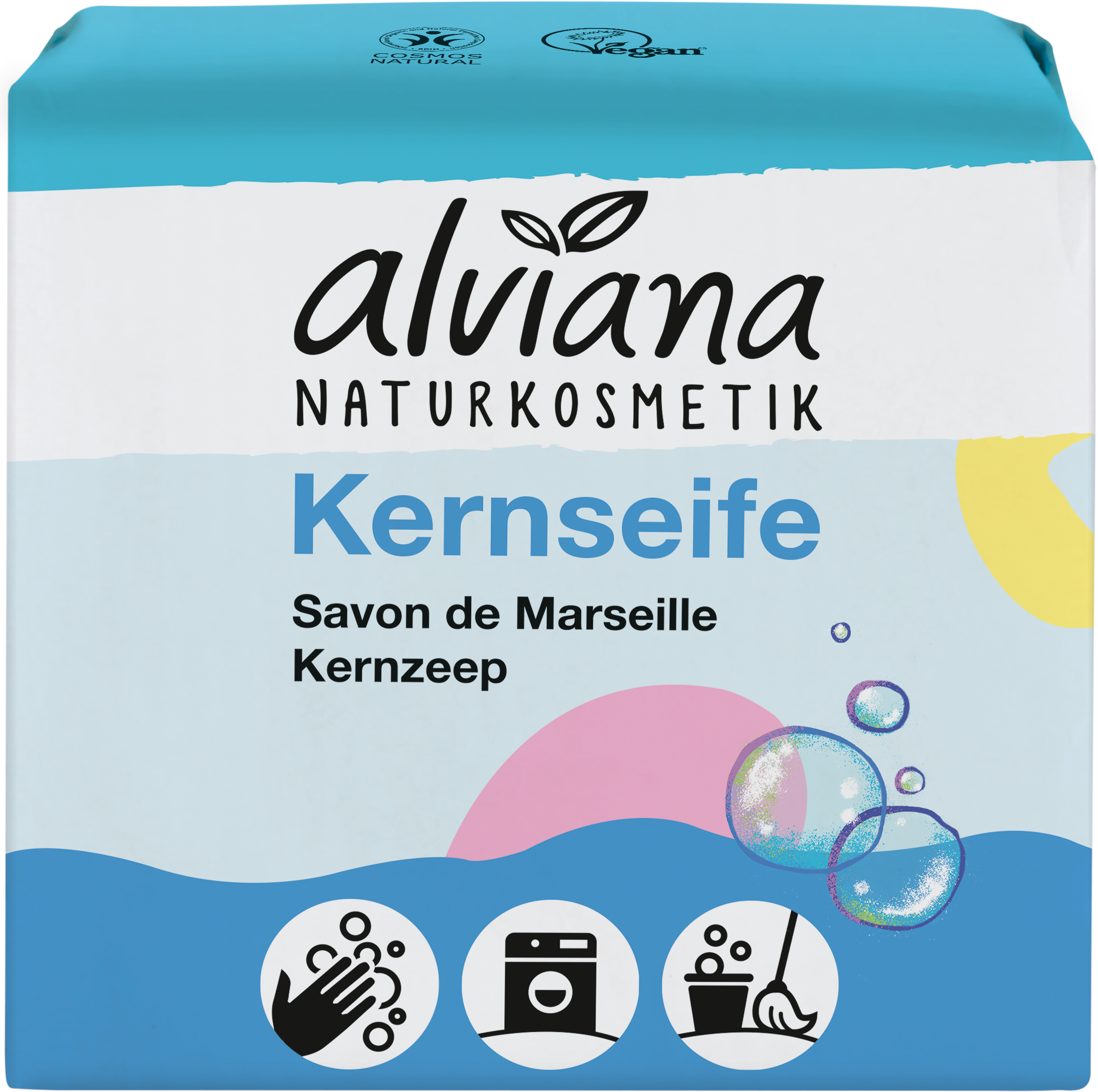 Сапунът на alviana предлага широк спектър от приложения за лична хигиена или екологично почистване на домакинството. Той се вари в котел в Марсилия по оригинална рецепта, хипоалергенен е и съставът му е толкова мек, че е подходящ за чувствителни типове кожа. Сапунът служи като средство за отстраняване на петна от текстил, а когато се използва като перилен препарат, предлага екологична алтернатива на конвенционалните почистващи препарати. Естественият, чист аромат на универсалния сапун гарантира прекрасно усещане за свежест.