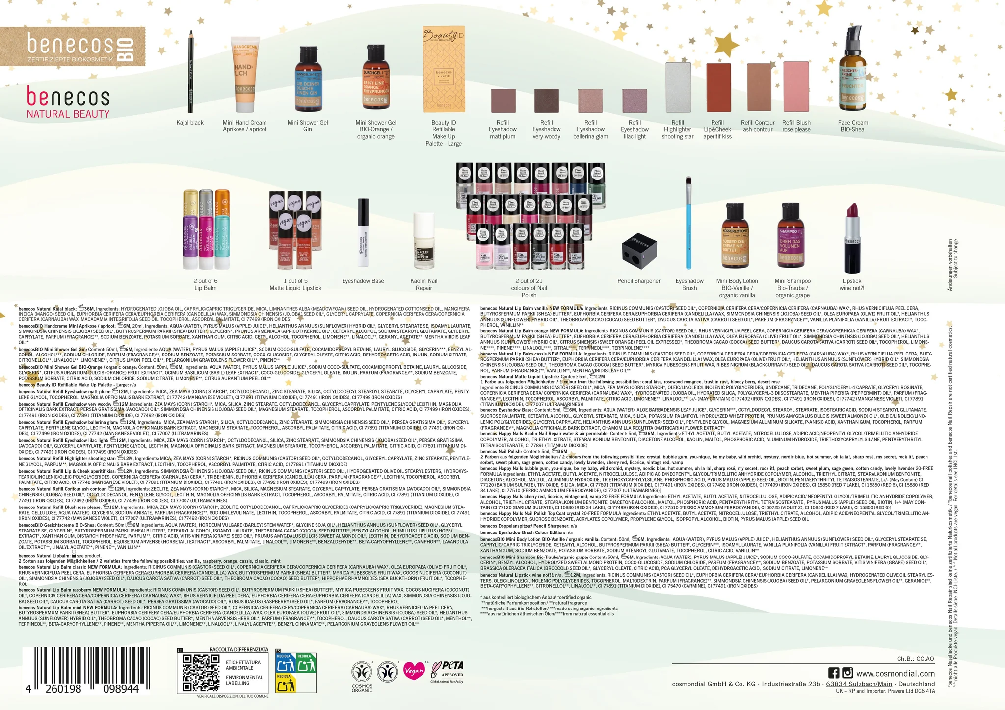 Открийте очарователния адвент календар на benecos, който крие 24 дни, изпълнени с радост и изненади. Зад всяко прозорче се крият внимателно подбрани продукти от декоративна козметика и подхранващи грижи, които ще направят предпразничния сезон още по-вълшебен – както за ваш близък човек, така и за вас самите. Превърнете всеки ден в специално преживяване, което ще направи времето до Коледа още по-радостно и приятно.