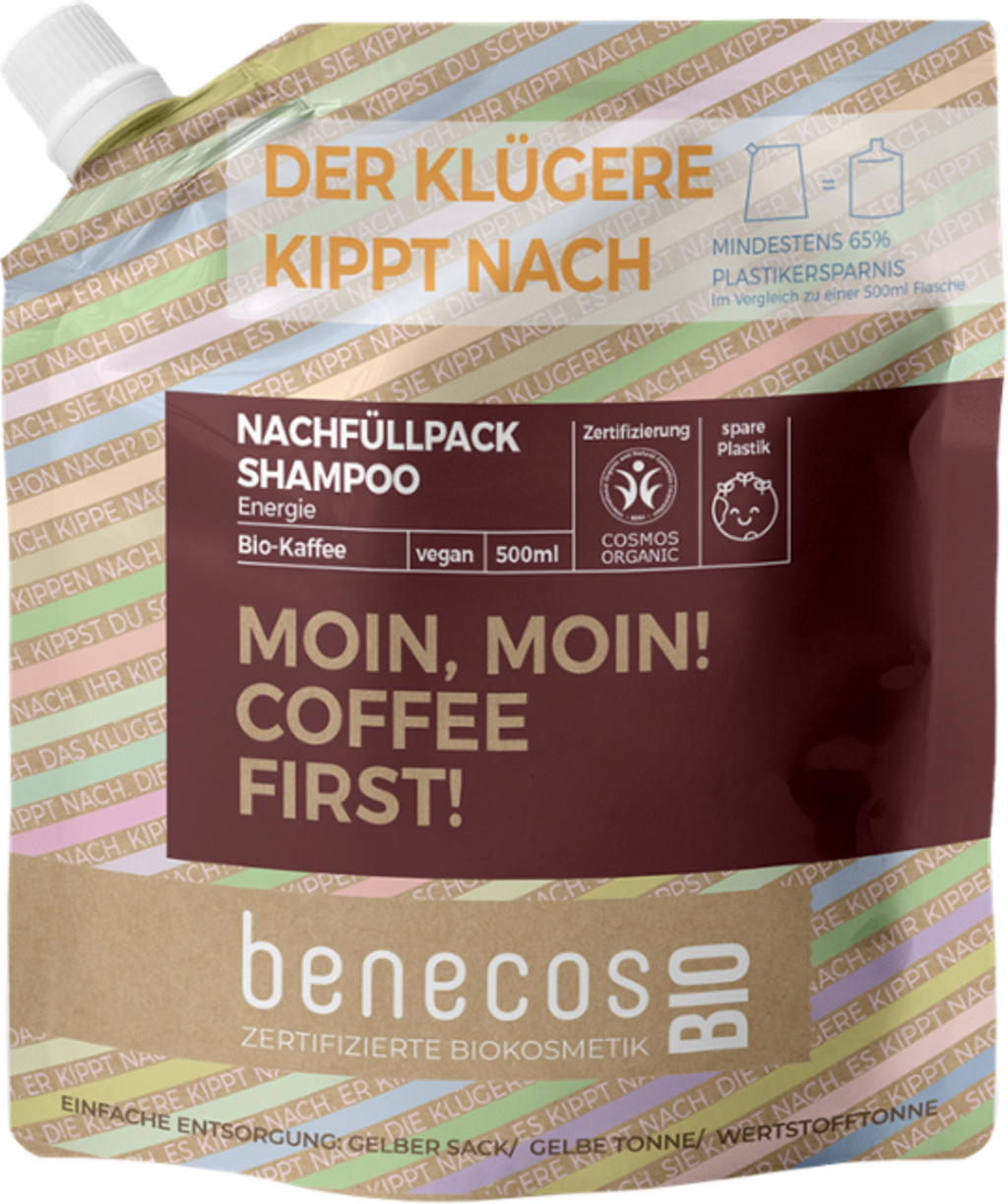 benecos benecosBIO Енергизиращ шампоан "Moin Moin! Coffee First!", Пакет за допълване 500 ml (500 мл)
