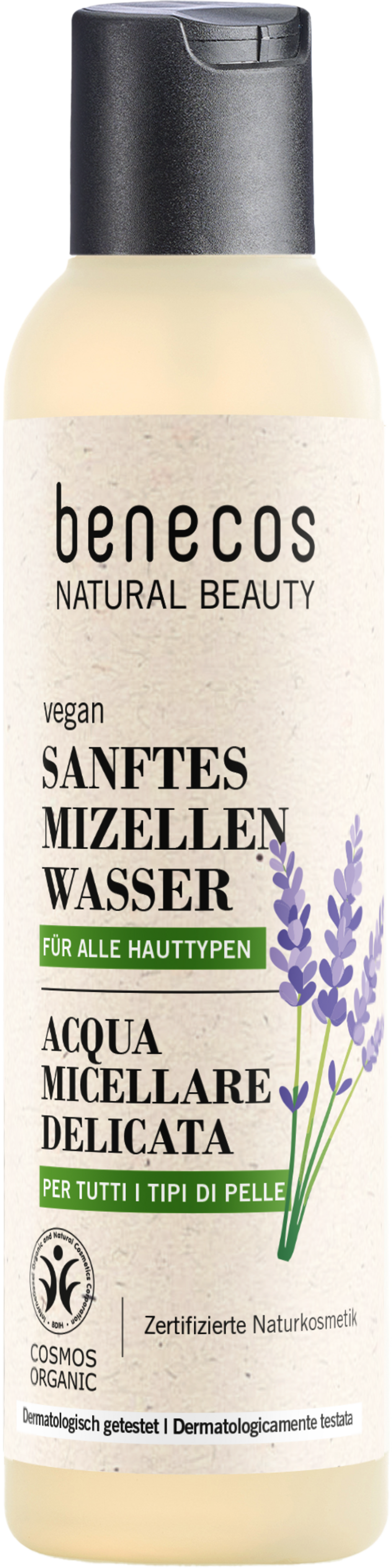 Мицеларната вода е универсално средство за отстраняване на грима. Тя премахва грима, замърсяванията и излишния себум и почиства особено добре лицето, устните и очите. Благодарение на органичните активни съставки като хиалуронова киселина, алое вера и лавандулова вода кожата е освежена и хидратирана. За усещане за чиста и избистрена кожа!
