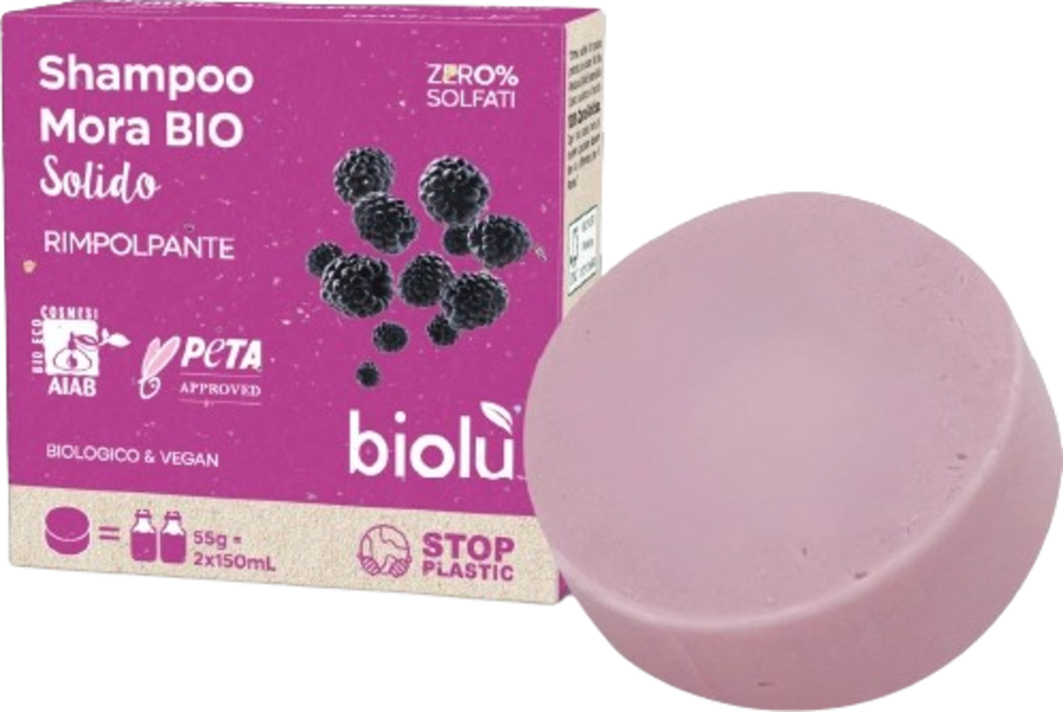 biolù Solid Hair Shampoo, Blackberry (55 г)