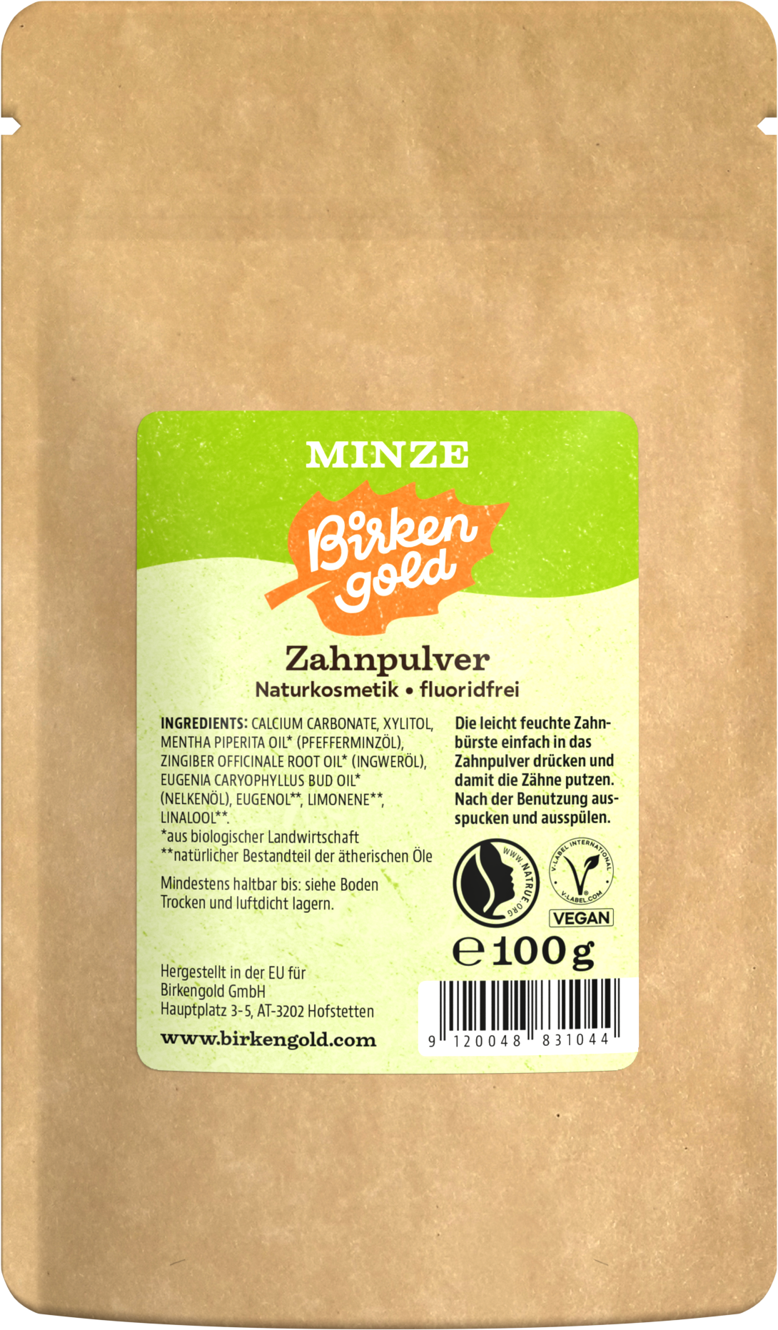 Birkengold Прах за миене на зъби Мента, Пакет за допълване 100 г