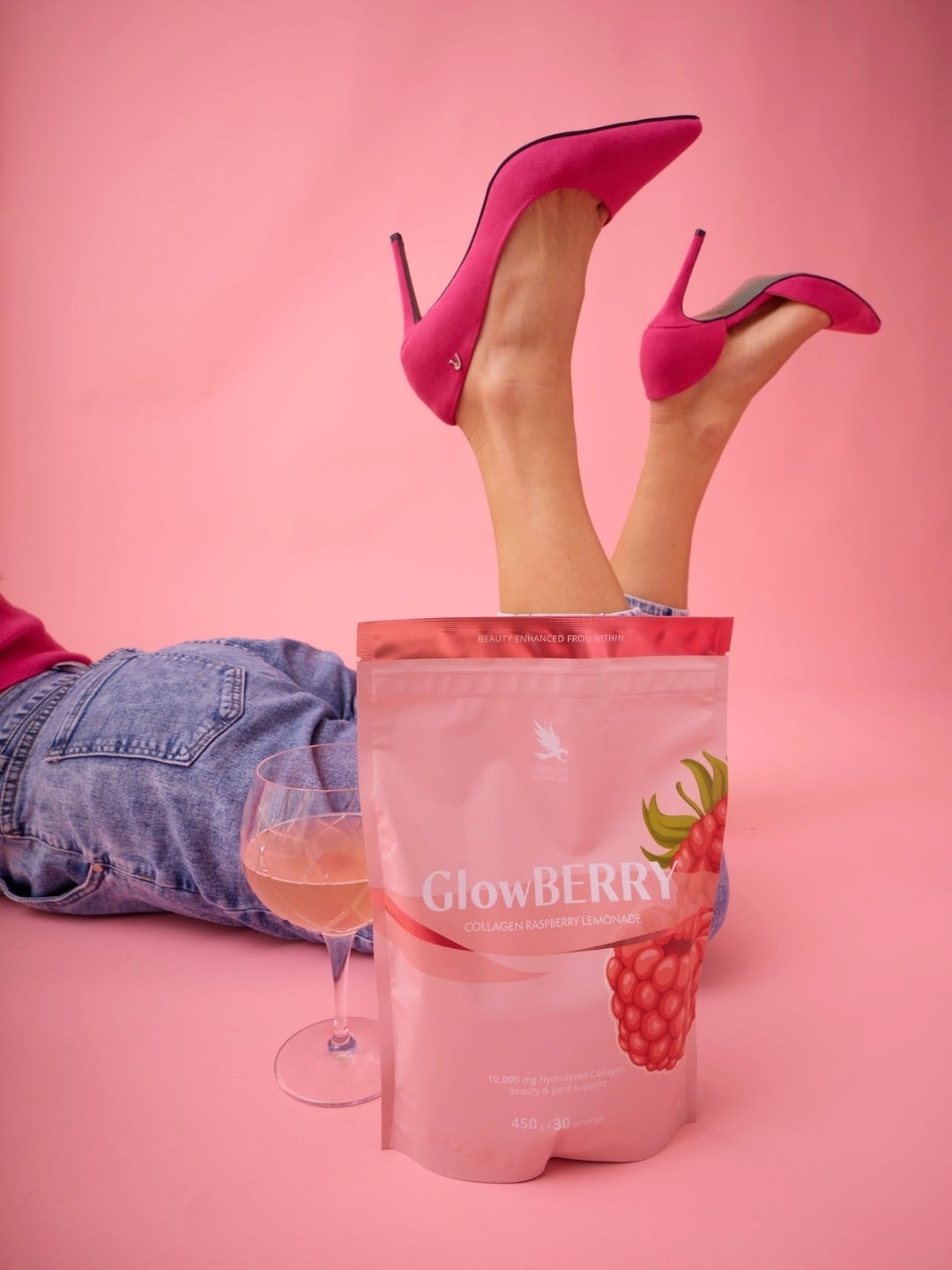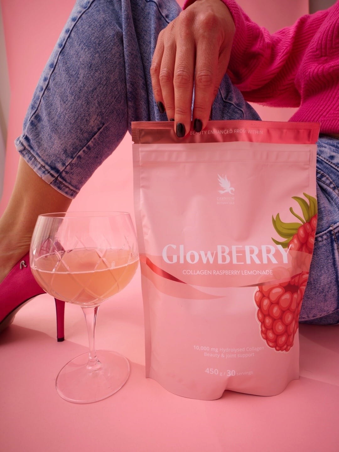 GlowBERRY е свежа и вкусна напитка с 10 000 mg хидролизиран колаген, 125 mg хиалуронова киселина и основните микроелементи витамин С и цинк. Формулата е допълнена с акай и шипка. Колагенът е естествен структурен протеин в организма, но собственото му производство намалява с възрастта.