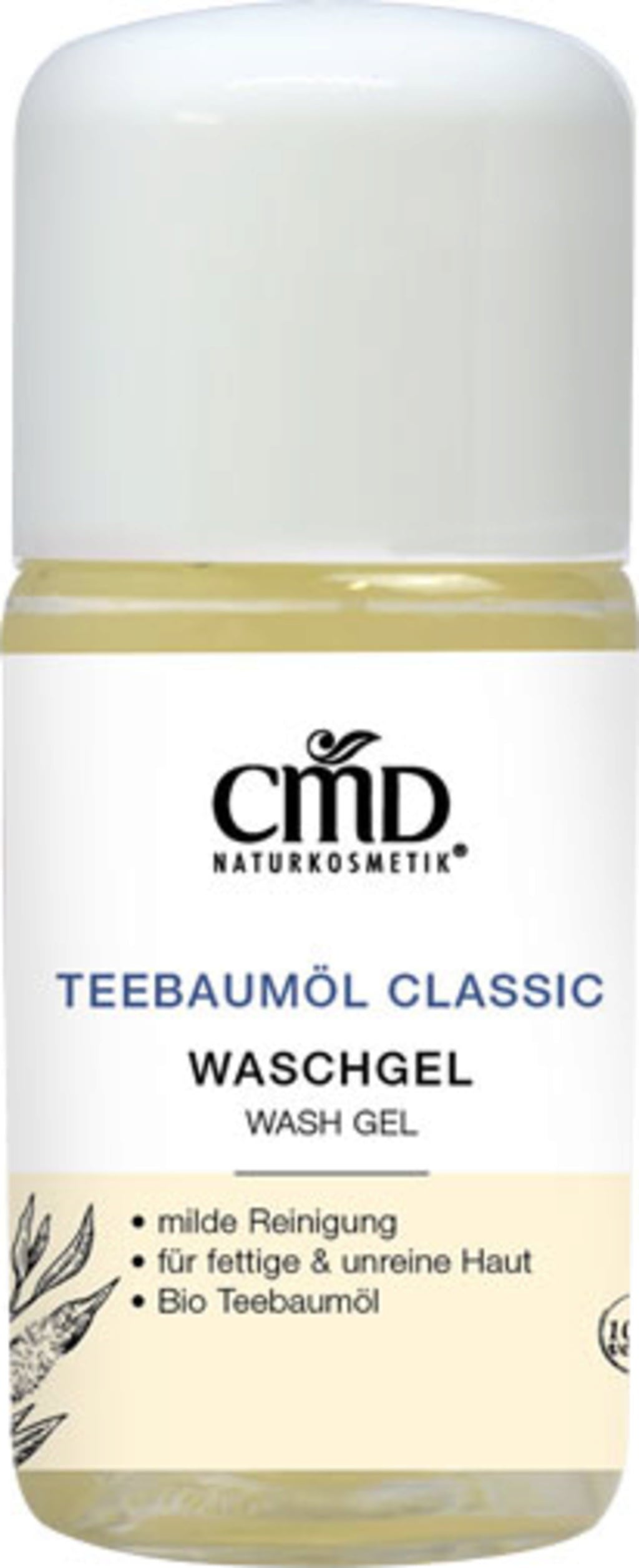 Почистващият гел с масло от чаено дърво от CMD прочиства порите, освежава и хидратира. Активните съставки от алое вера и розова вода също има успокояващ ефект и предотвратяват зачервявания. Почистващият гел подготвя кожата за по-нататъшна грижа. Като цяло, козметичната линия с масло от чаено дърво е особено подходяща за проблемна, мазна и комбинирана кожа.