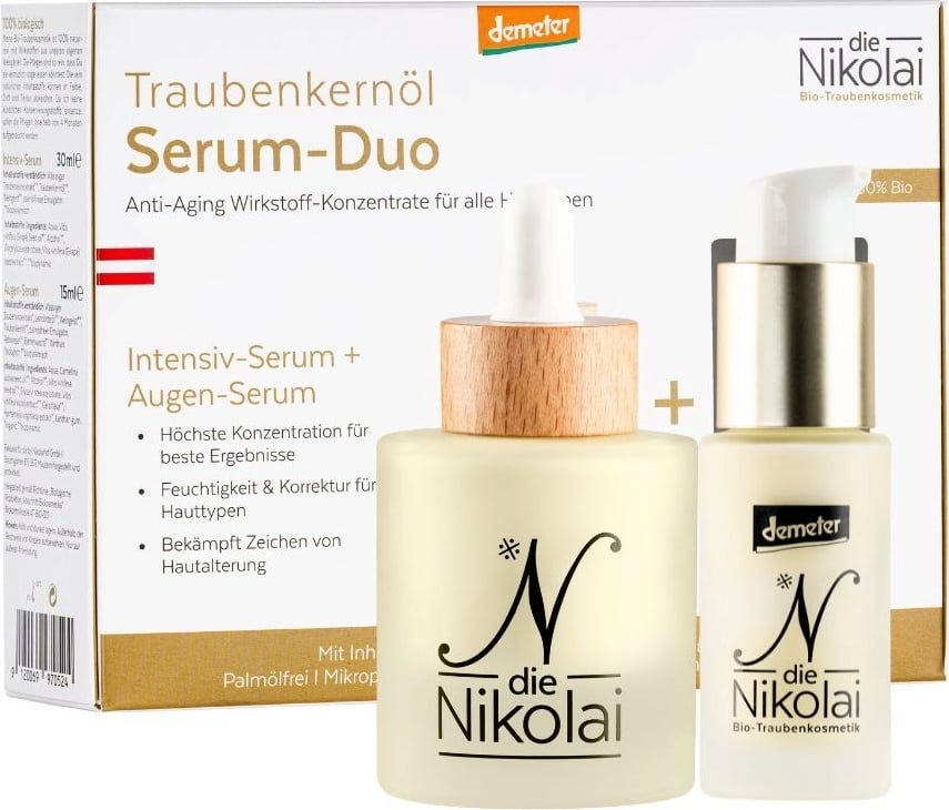 - Серум за очи - Концентрираният серум с активни съставки е специално разработен за чувствителната кожа около очите. Той овлажнява, има успокояващи свойства и изглажда линиите на сухота. Съдържа австрийски пчелен восък Demeter и поради това не е веган.