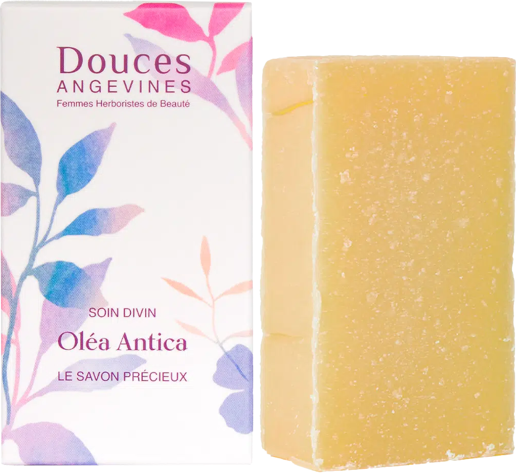 Със сапуна Oléa Antica от Douces Angevines можете да пренесете част от традицията директно в банята си! Този специален сапун се произвежда в Savonnerie Maison Sidonie Champagne по щадящ студен процес, което означава, че ценният глицерин на чисто растителна основа се запазва напълно и осигурява на кожата ви богата грижа при всяко почистване.