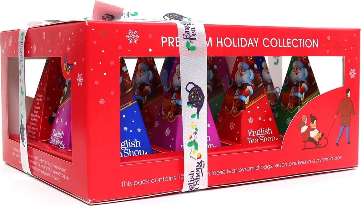 12 здрави чаени пирамиди придружават феновете на силните плодови и билкови аромати през бурни зимни дни и кристално ясни мразовити нощи. Песенен поздрав към “The Twelve Days of Christmas” – празничен британски стил за вашата чаена чаша!