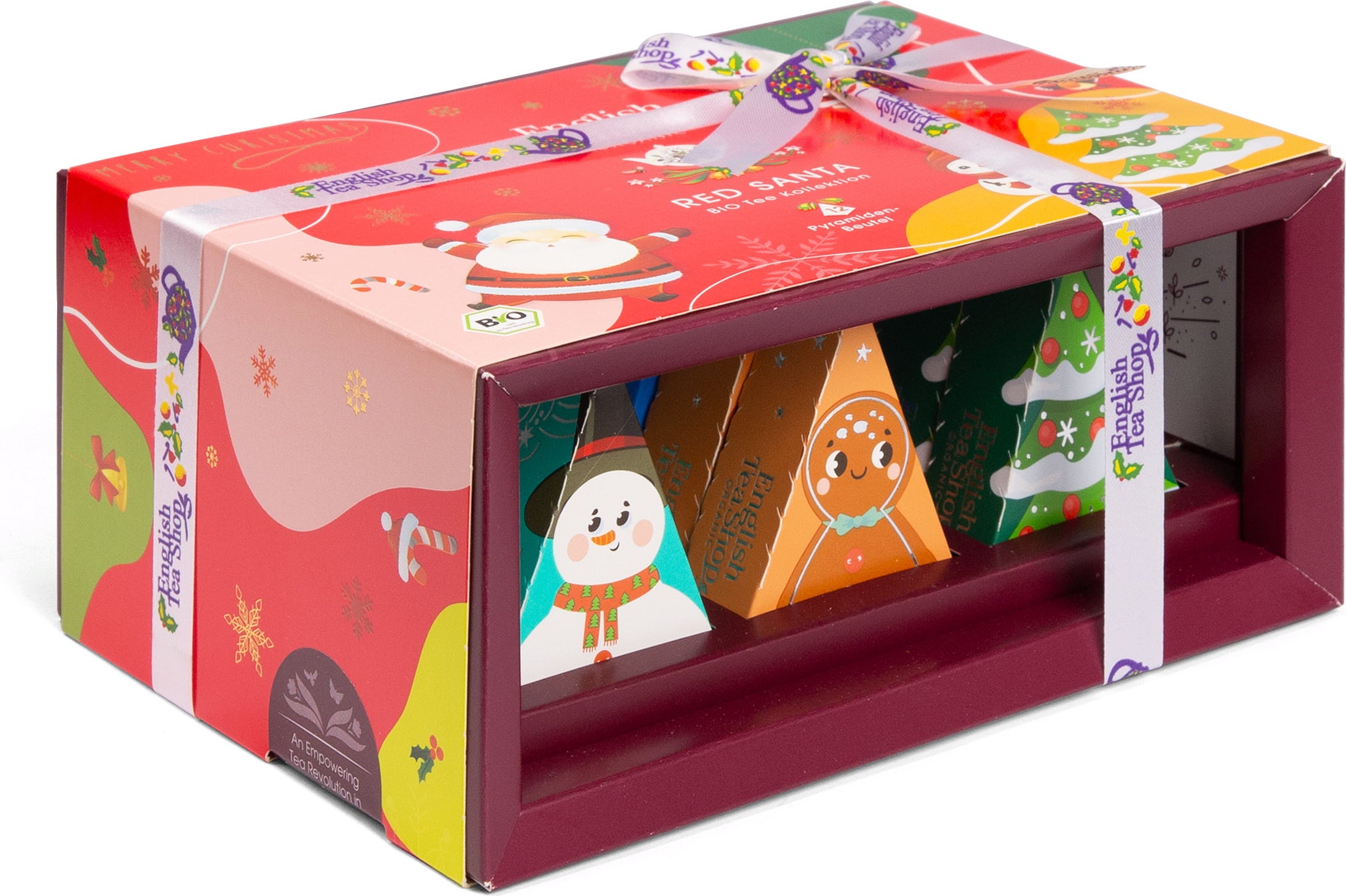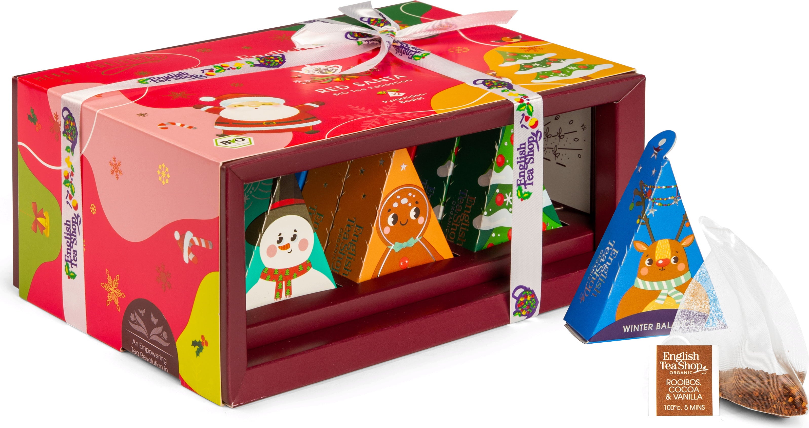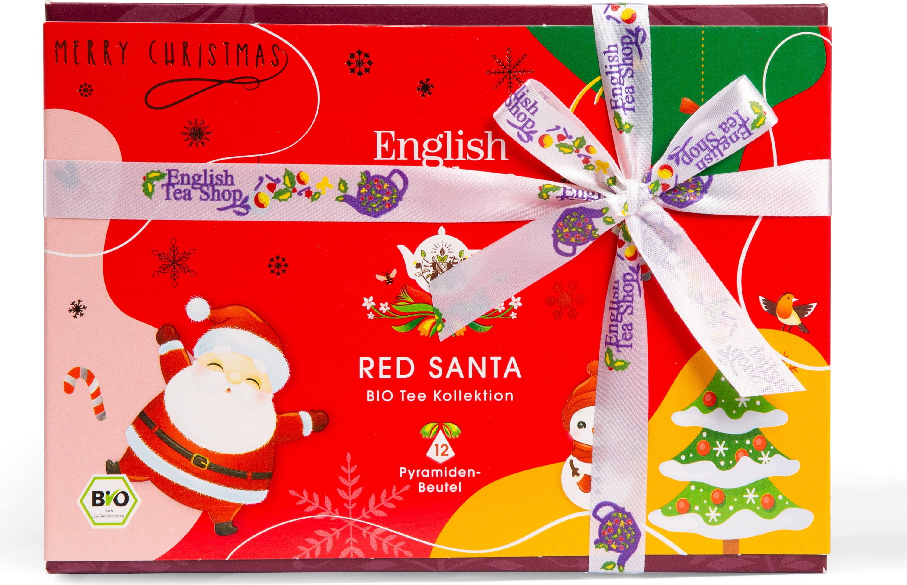 English Tea Shop Чаен подарък с панделка „Red Santa Christmas“, БИО, 12 торбички за чай (24 г)