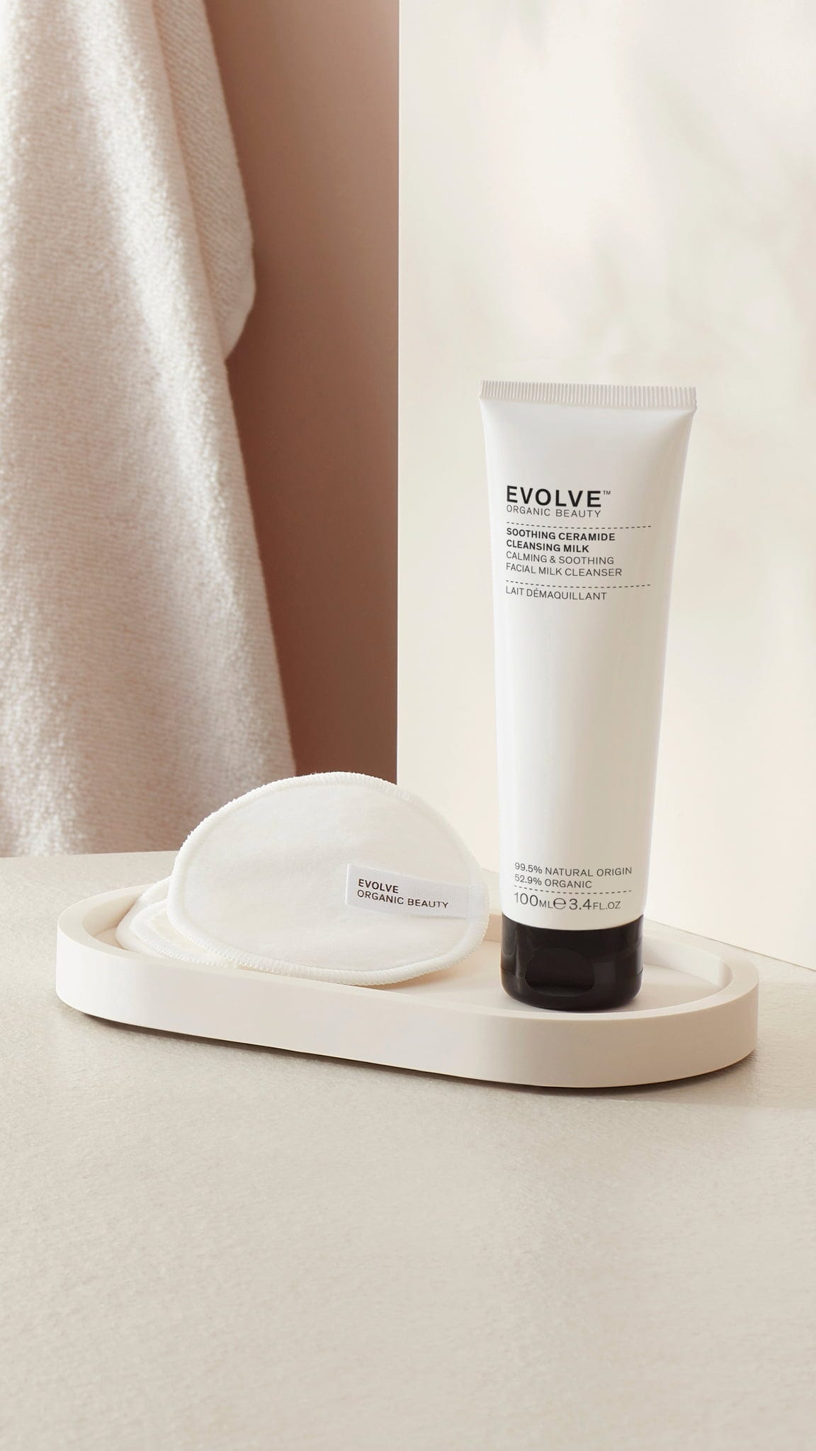 Evolve Organic Beauty Успокояващо почистващо мляко с церамид, 100 мл