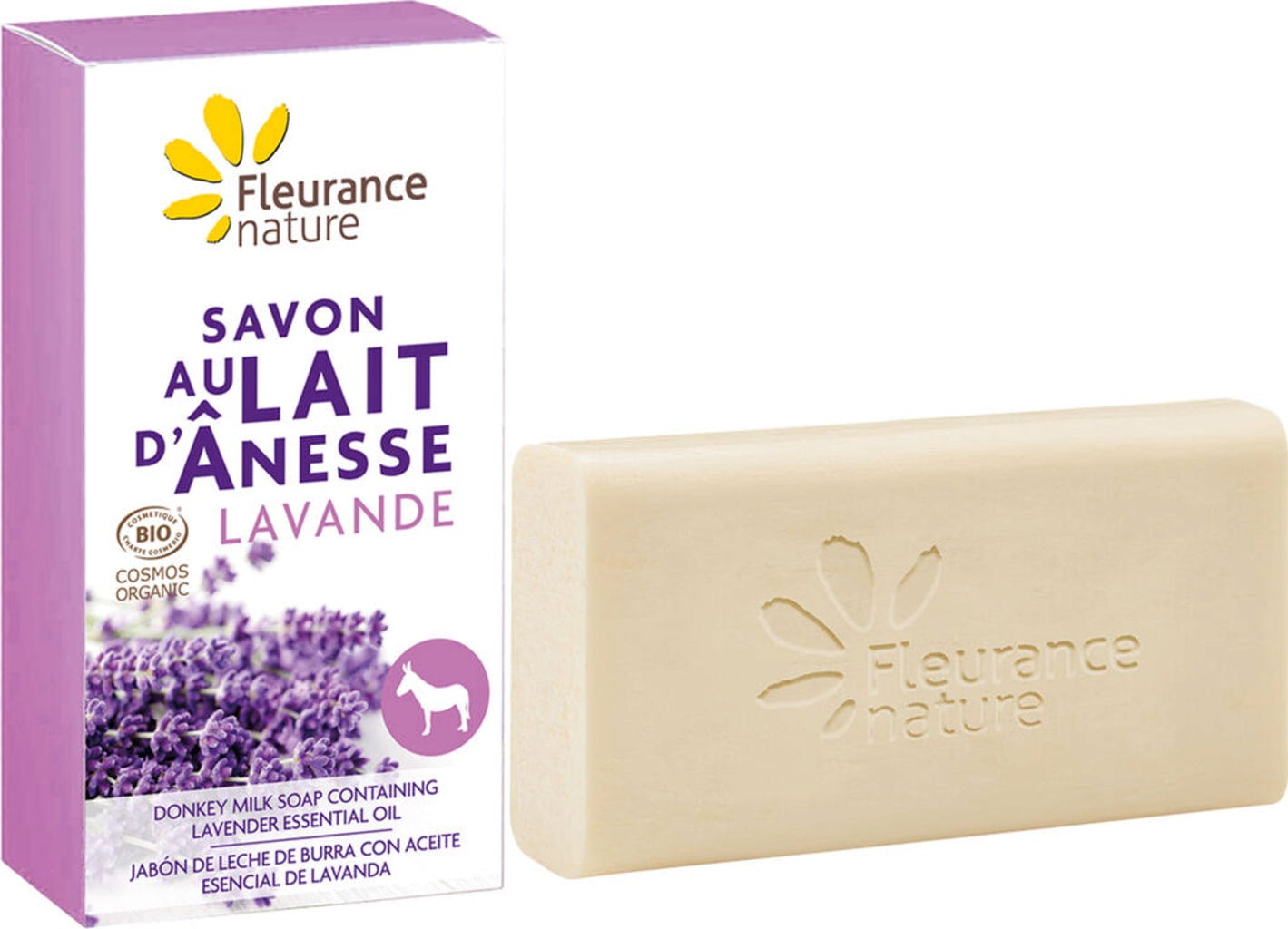 Магарешкото мляко е тайна в грижата за красотата от древни времена. Благодарение на високото си съдържание на микроелементи и минерали, то омекотява кожата и я подхранва интензивно. Легендата разказва, че египетската кралица Клеопатра се къпела ежедневно в магарешко мляко, за да запази красотата и младостта на кожата си. Fleurance nature предлага набор от сапуни, които са особено нежни за кожата, чиито формули са обогатени с прясно магарешко мляко, за да имат особено грижовен ефект. То идва от биологична ферма във френския департамент Гар, където магарешките стада прекарват цялата година на открито по подходящ за вида начин. През зимата те имат достъп до конюшни и био фуражи.