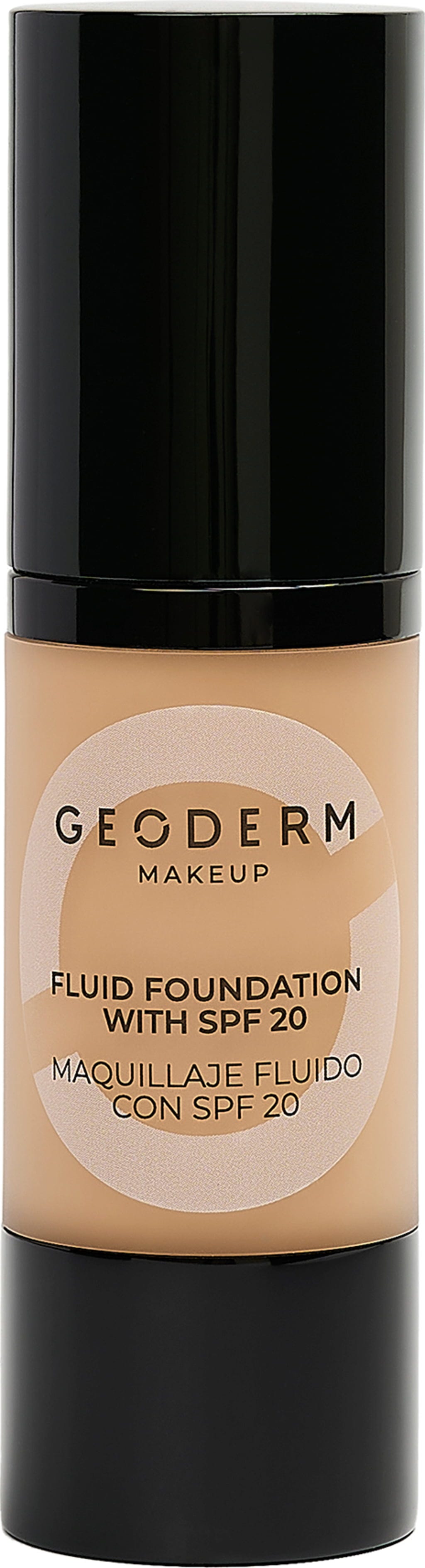Флуидният фон дьо тен със SPF 20 на Geoderm видимо подобрява текстурата на кожата, изравнява тена и минимизира порите без ефект на маска. Стопроцентово натуралната формула с висококачествени минерални пигменти се адаптира перфектно към тена на кожата ви и осигурява мек, естествен завършек. С подхранващи съставки и среден слънцезащитен фактор той предпазва кожата ви от слънчевите лъчи. Усъвършенстваната комбинация регулира блясъка на кожата и излишната мазнина, без да я изсушава, и затова е идеална за мазна смесена кожа.