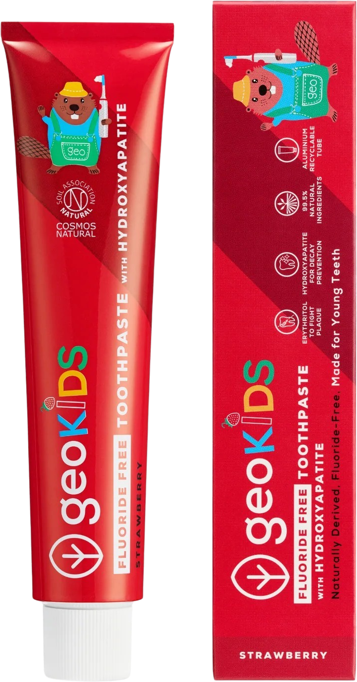 Georganics geoKIDS паста за зъби без флуор с ягода и хидроксиапатит, 75 мл