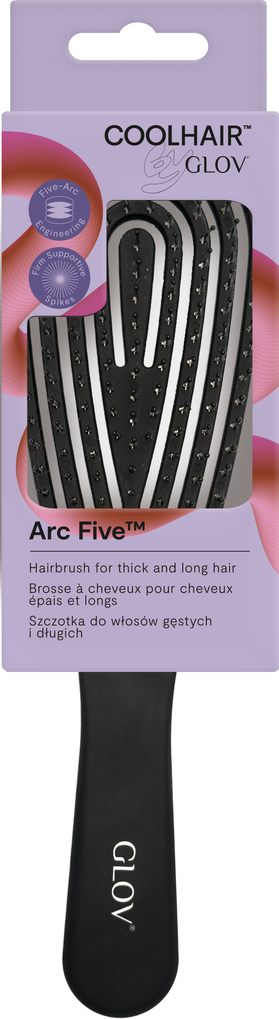Иновативната Четка Arc Five™ е създадена, за да се плъзга през косата с прецизност и лекота. Уникалната ѝ структура с пет извивки оформя капковидна форма, която повишава стабилността и позволява на четката да се движи плавно при всяко движение. Благодарение на висококачествените, стабилно закрепени щифтове тя преминава дори през гъста коса и я поддържа отдолу, като предотвратява дърпане, накъсване или увреждане. Това прави четката идеална за дълга, гъста или склонна към заплитане коса и осигурява балансирано изживяване при разресване, което се усеща едновременно мощно и нежно. Ергономичната форма осигурява сигурен и удобен захват и пълен контрол – независимо дали разплитате, изглаждате или създавате ежедневния си стайлинг.