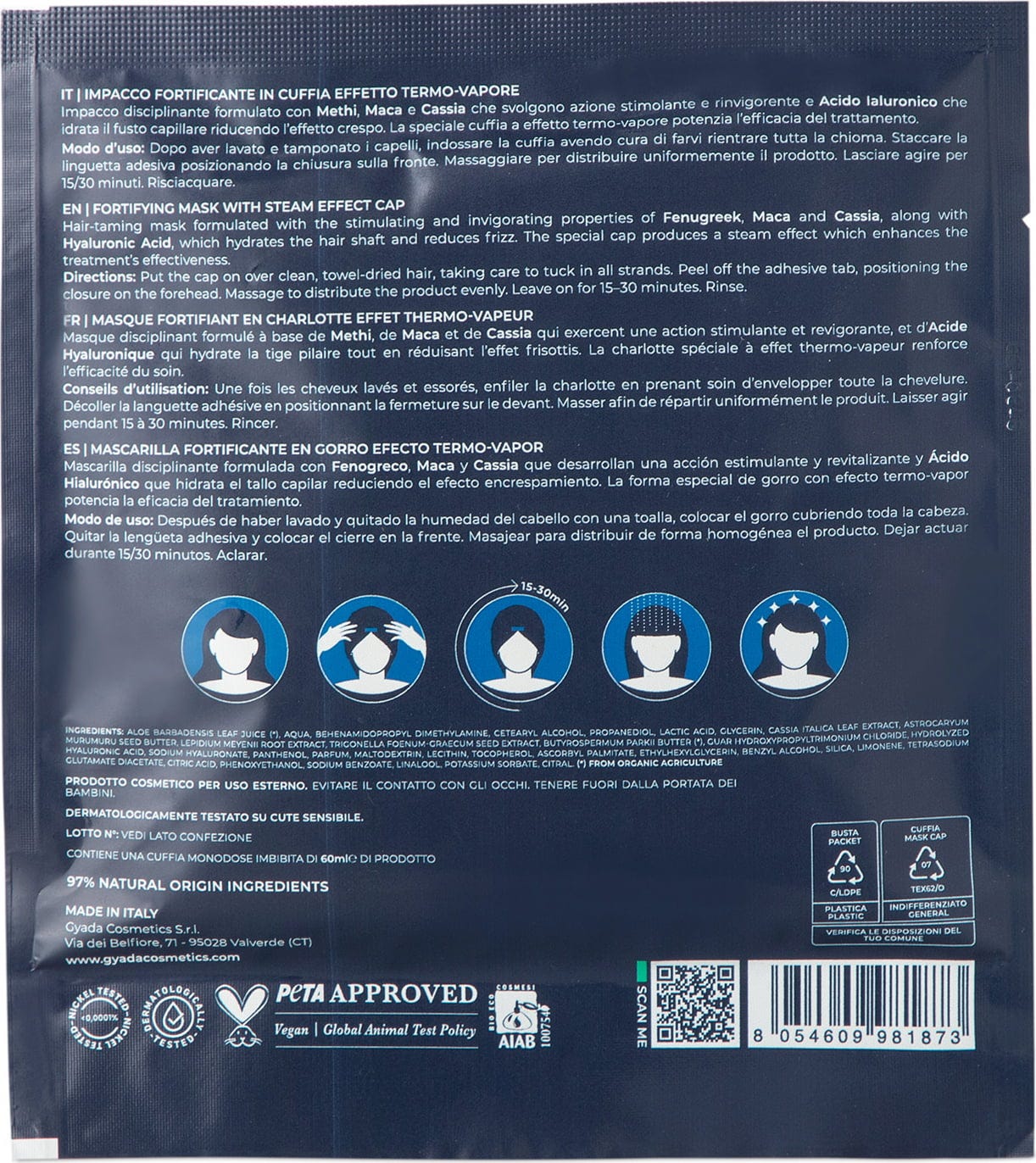 Gyada Cosmetics Hyalurvedic Укрепваща лист-маска за косата, 60 мл