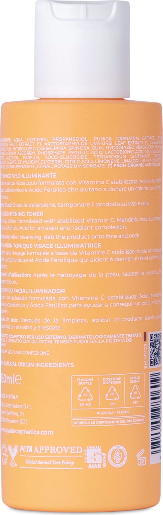 Aqua, Glycerin, Propandiol, Punica Granatum (Pomegranate) Extract, Lycium Barbarum (Goij) Fruit Extract[1], Arctostaphylos Uva Ursi (Bearberry) Leaf Extract[1], Caesalpinia Spinosa Gum, Hydrolyzed Caesalpinia Spinosa Gum, Hydrolyzed Verbascum Thapsus Flower, Sodium Ascorbyl Phosphate (Vitamin C), Ferulic Acid, Lactobionic Acid, Mandelic Acid, Benzyl Alcohol, Parfum, Coco Glucoside, Tetrasodium Glutamate Diacetate, Glyceryl Oleate, Ethylhexylglycerin, Citricacid, Limonene, Linalool, Alpha-Isomethyl Ionone, Sodium Benzoate, Citral, Potassium Sorbate