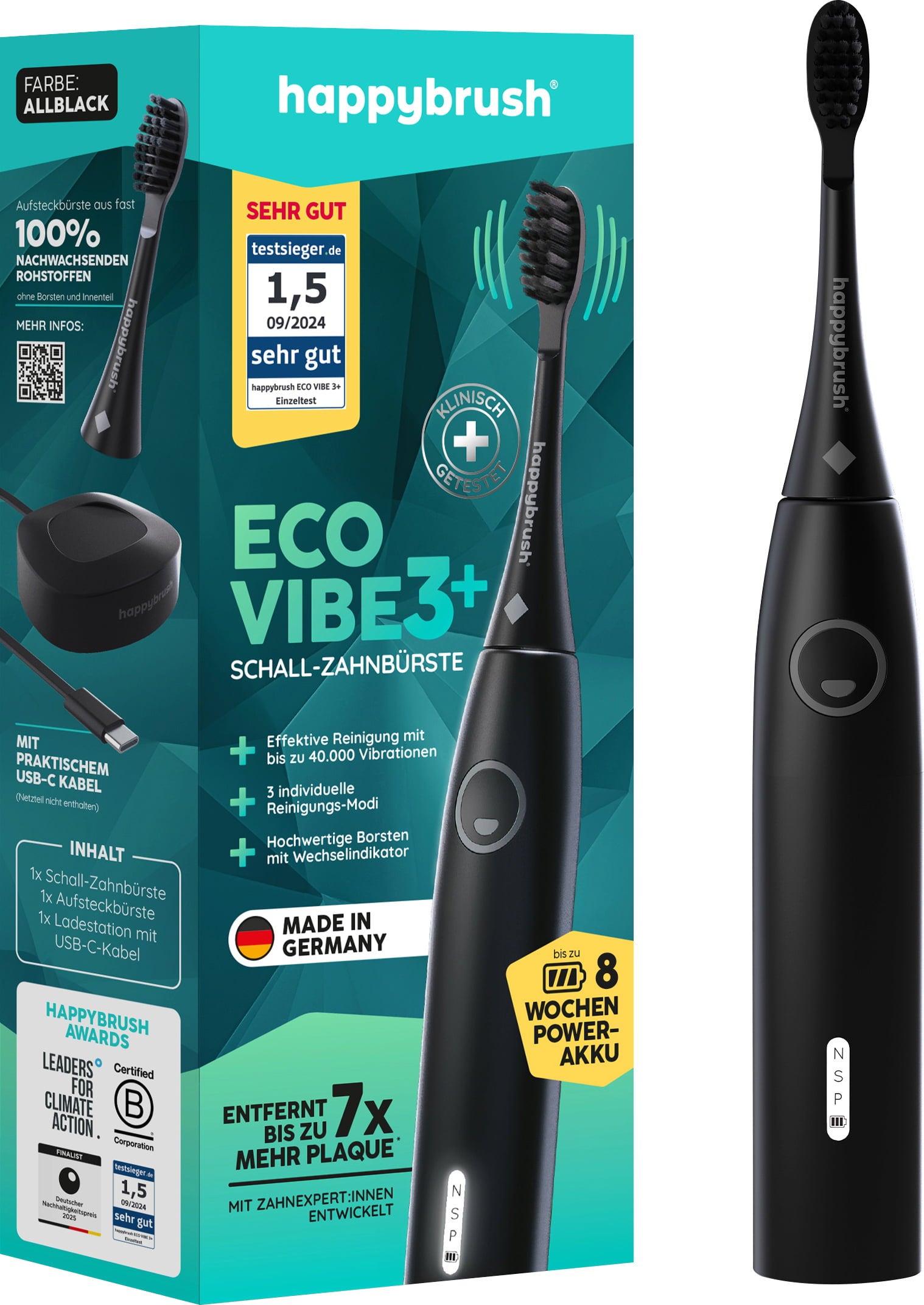 - 1x звукова четка за зъби ECO VIBE 3+ AllBlack