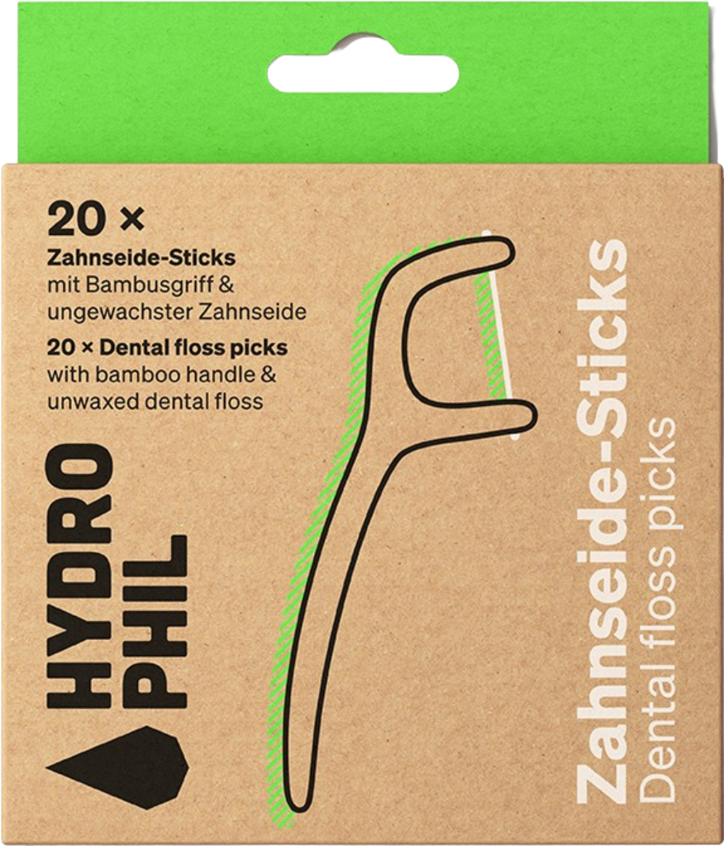 С щадящите околната среда стика за зъби от Hydrophil хигиената на зъбите се превръща в детска игра. Те са особено лесни за използване и без усилия премахват остатъците от храна и налепи. Използваният конец за зъби е изключително устойчив на разкъсване, а бамбуковата дръжка е напълно без пластмаса. Екологична дентална хигиена, подходяща както за възрастни, така и за деца.