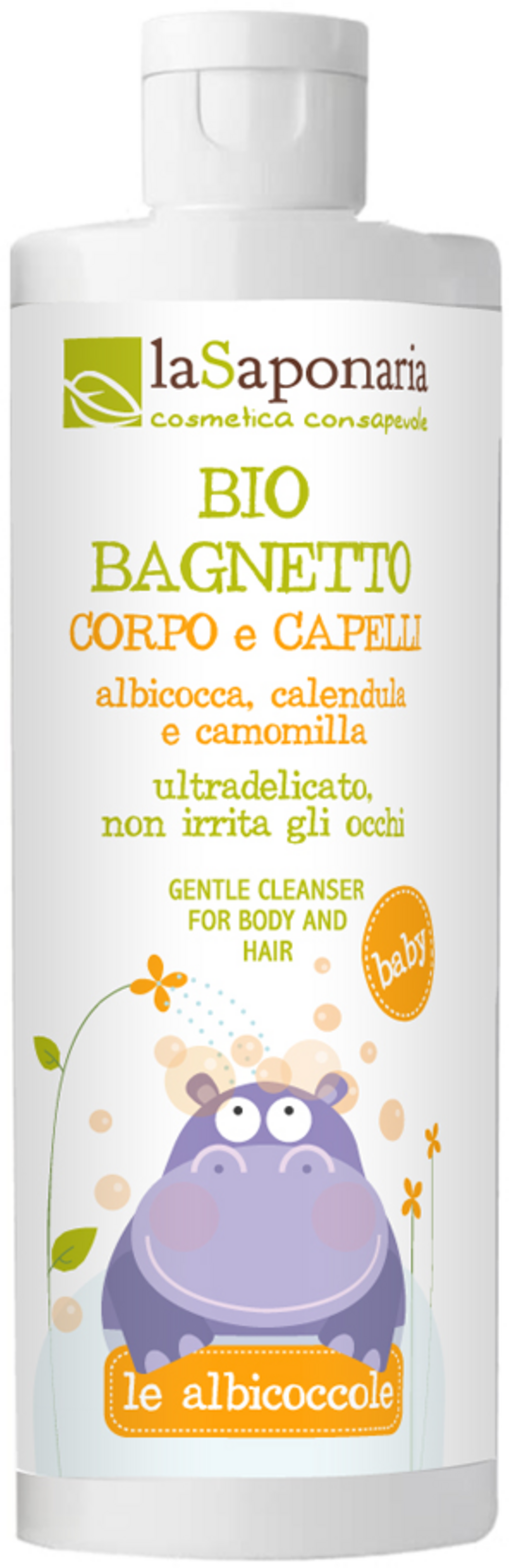 Идеална за нежно почистване на кожата и косата на бебето, като същевременно се поддържа деликатният баланс на чувствителна и нежна кожа. Избраните естествени съставки, напълно без алергени, гарантират, че продуктът не пари в очите, нито дразни кожата. Маслото от кайсиеви ядки и органичните екстракти от хамамелис, невен и лайка имат омекотяващо и успокояващо действие. Дерматологично тествано.