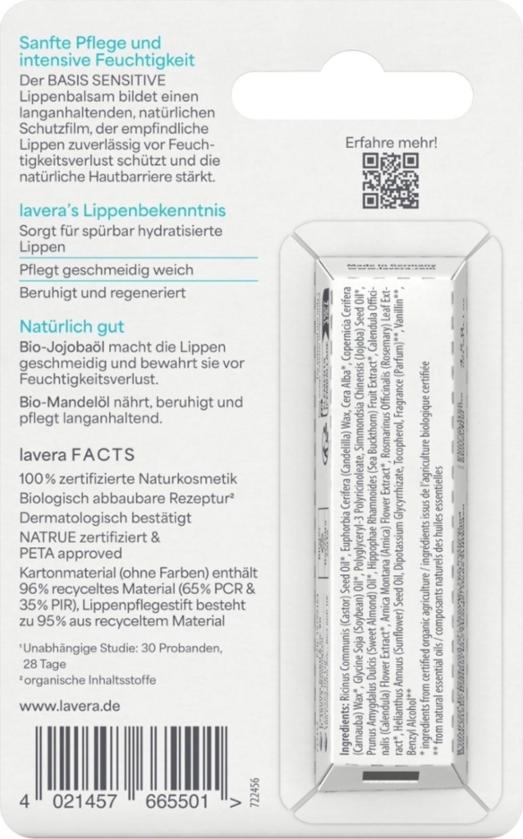 Lavera Балсам за устни Basis Sensitive, 4,50 г