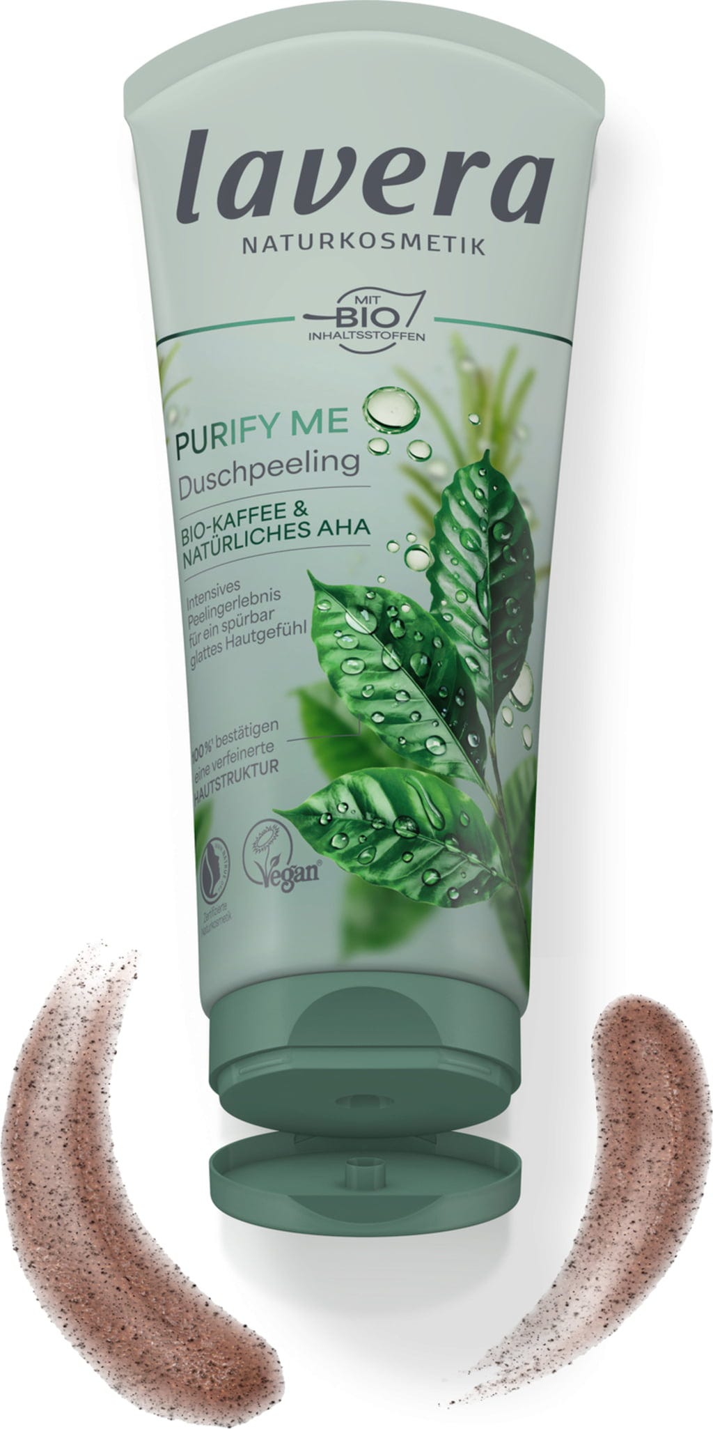 PURIFY ME Body Scrub комбинира механични ексфолианти, произведени от кафе, с натурални плодови киселини (AHA). Той осигурява лек масажиращ ефект и нежно отстранява мъртвите кожни клетки. Формулата с неутрално рН оставя кожата гладка и копринена.