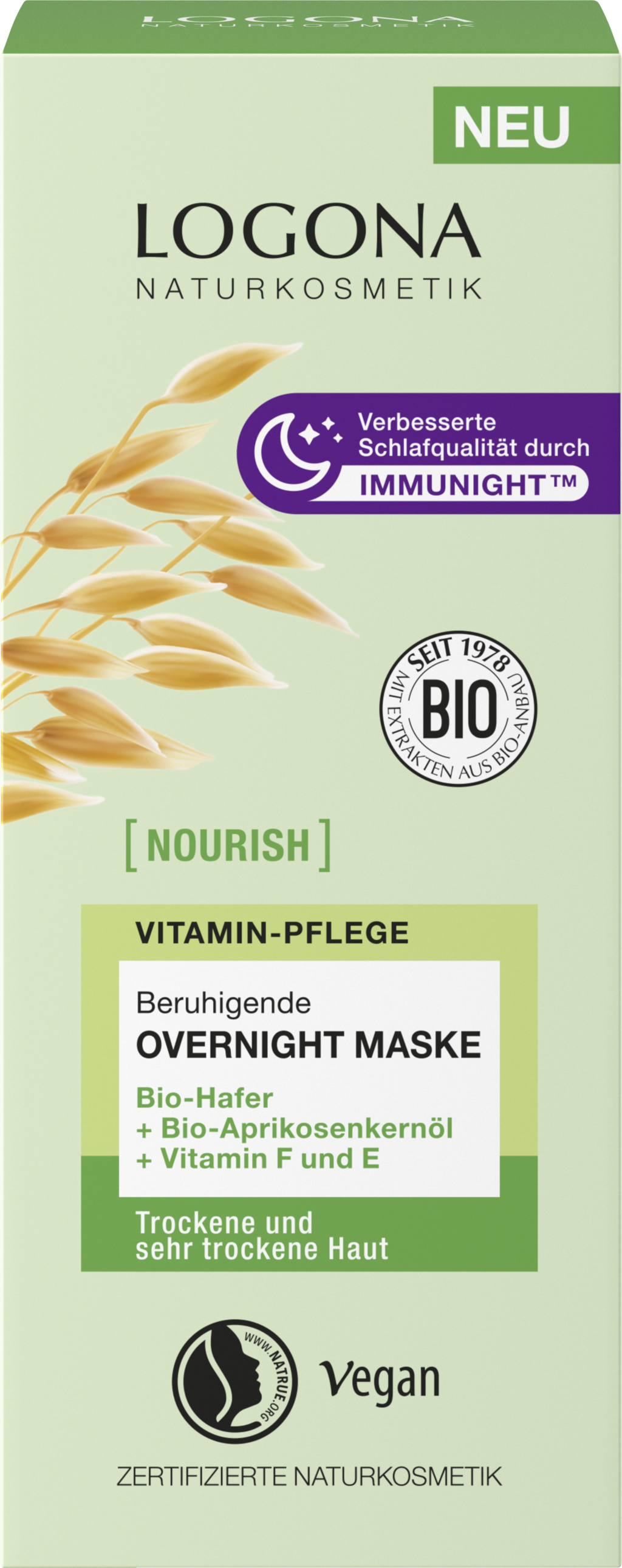 Тази кремообразна маска осигурява идеалната хидратираща грижа и регенериране, от които спешно се нуждаят особено много сухите типове кожа. Формулата с органичен овес, органично масло от апорикоза и витамини F и E действа интензивно през нощта и снабдява кожата с множество хранителни вещества. На следващата сутрин тенът ви изглежда по-гладък, стегнат и сияен. Бариерният слой също се радва на повишена устойчивост, като възстановява баланса на кожата.