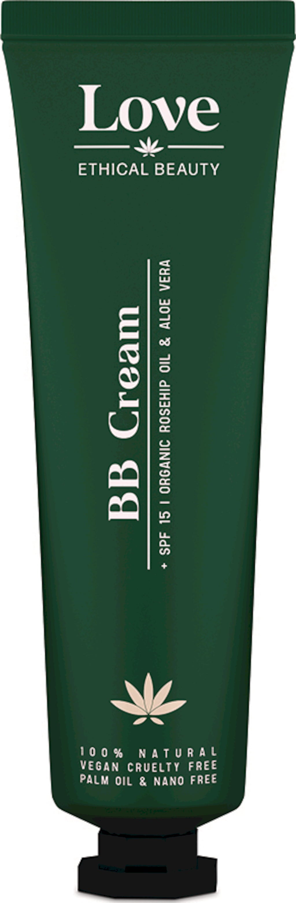 Получете перфектния блясък с натуралния BB крем на Love Ethical Beauty. Усъвършенстваната формула съдържа лек SPF, както и алое вера и масло от шипка, които осигуряват на кожата идеална грижа. Алое вера овлажнява, а маслото от шипка снабдява кожата с ценни хранителни вещества и я прави сияйна и подхранена. Насладете се на безупречен тен без много усилия.