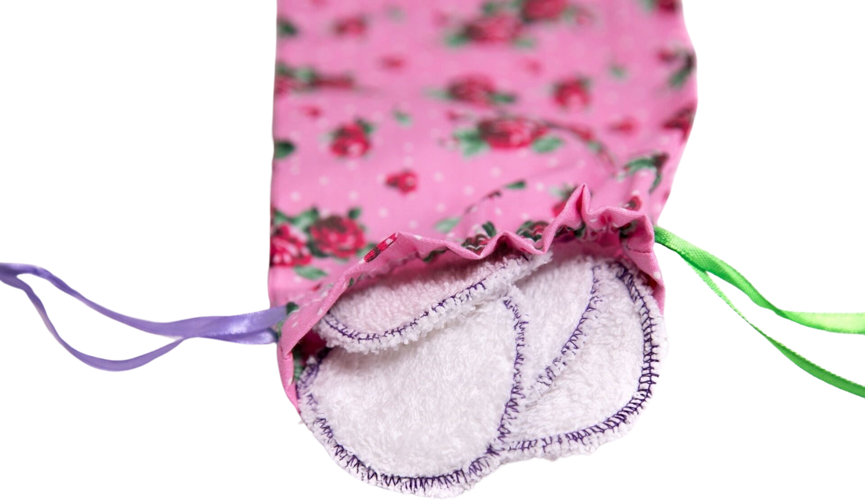 Тези меки почистващи тампони улесняват премахването на всякакъв вид грим, дори и водоустойчив, както и нанасянето на тоник. Те са шити на ръка в Италия, както и бродирани, и могат да се перат и да се използва отново. Те заменят ефективно конвенционалните тампони за еднократна употреба.