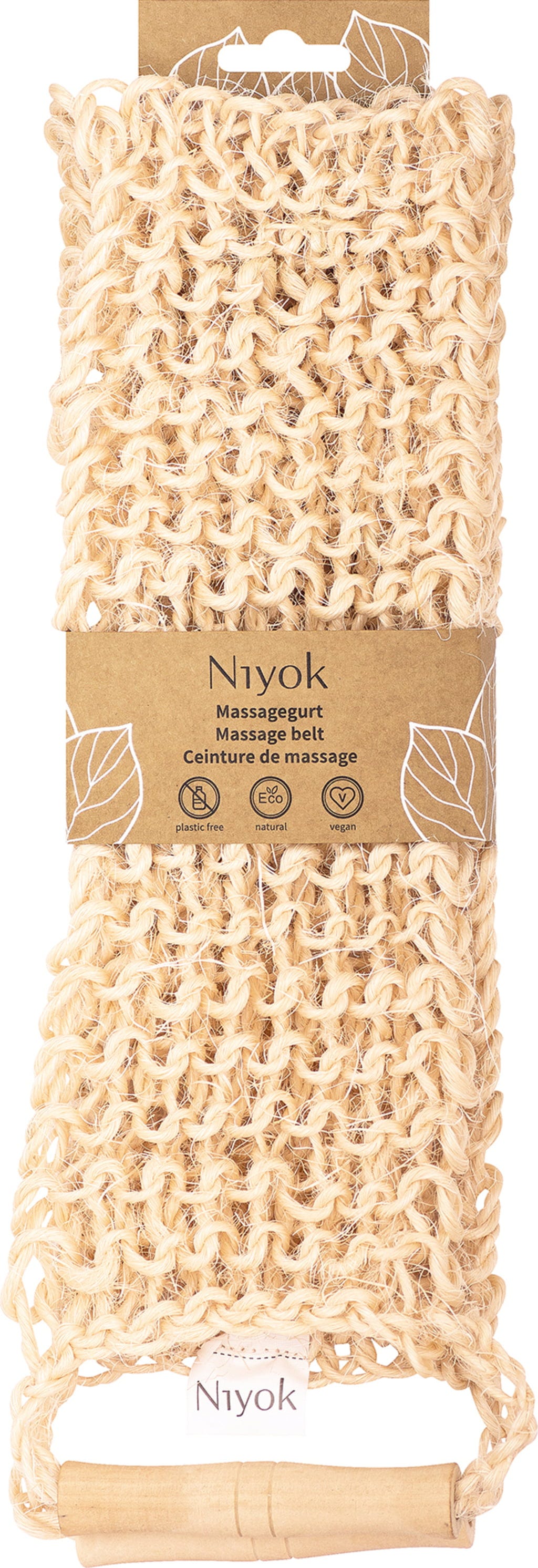 Масажният колан, изработен от висококачествени естествени материали, е ексфолиращо и масажиращо средство. Той е специално разработен за премахване на мъртвите кожни клетки и ревитализиране на кожата. Благодарение на ръчните примки можете индивидуално да регулирате налягането. Дължината на презрамката е подбрана така, че да се достига ефективно до гърба, раменете и други части на тялото.