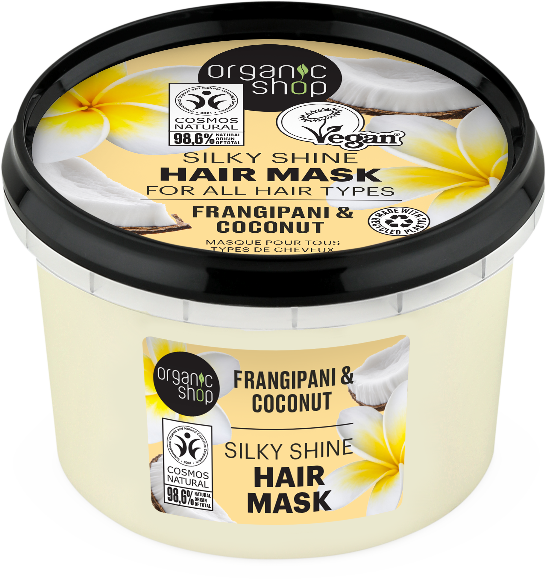 Organic Shop Маска за коса с копринен блясък Франджипани и кокос, 250 мл