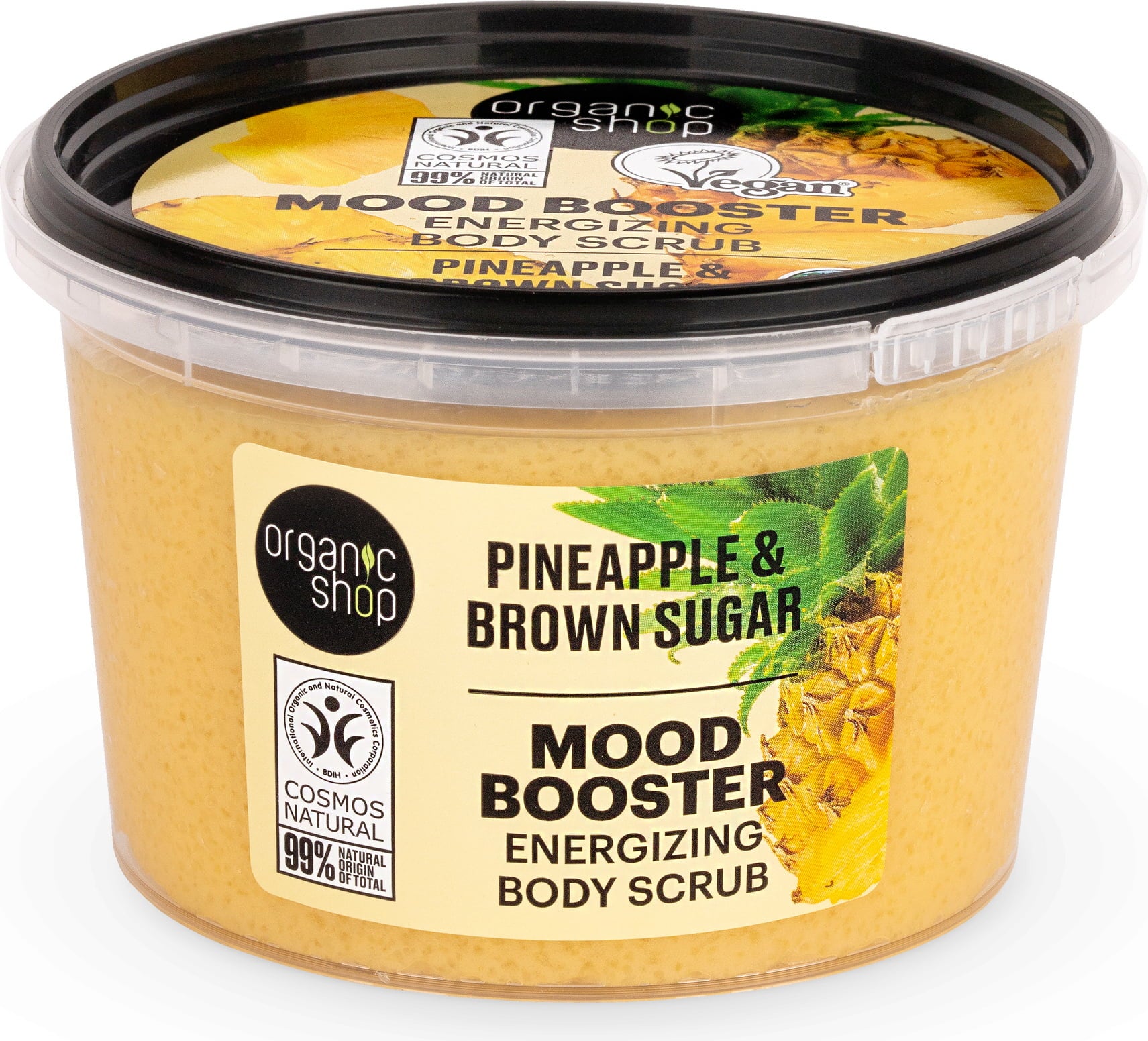 Organic Shop Mood Booster Енергизиращ скраб за тяло Ананас и кафява захар, 250 мл