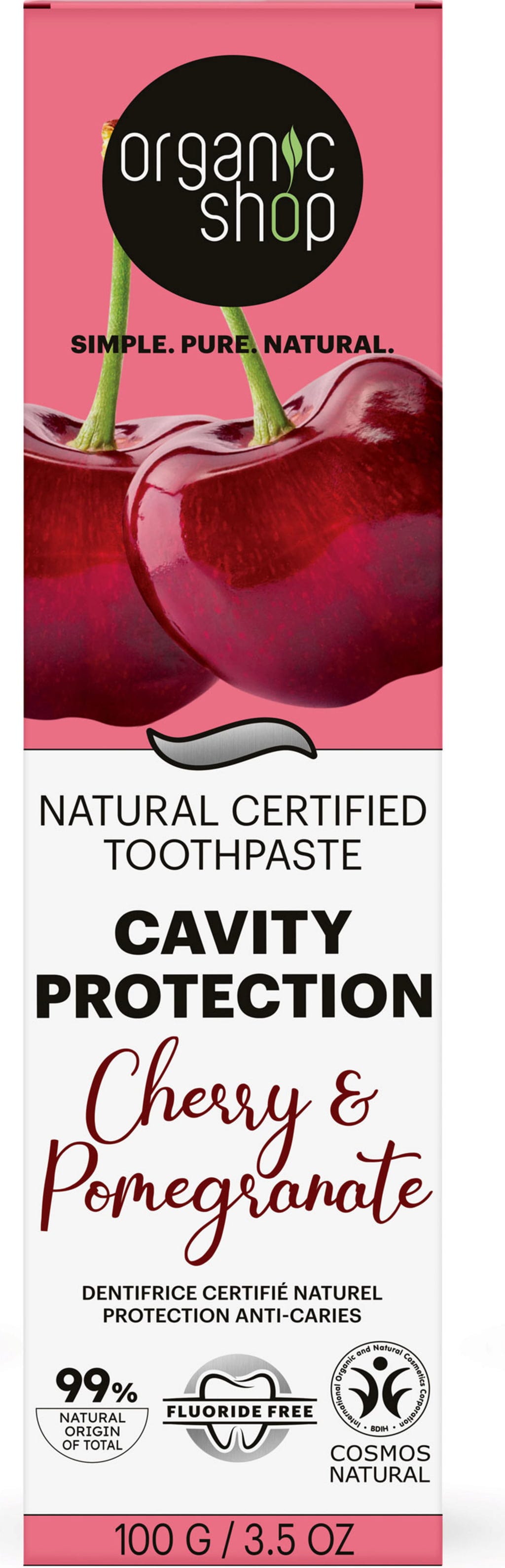 Обогатена с органичен екстракт от нар, тази паста за зъби осигурява дълбоко почистване и минимизира натрупването на плака. Междувременно органичният екстракт от череша помага за поддържане на балансирана флора в цялата област на устата и ви дава свеж дъх.