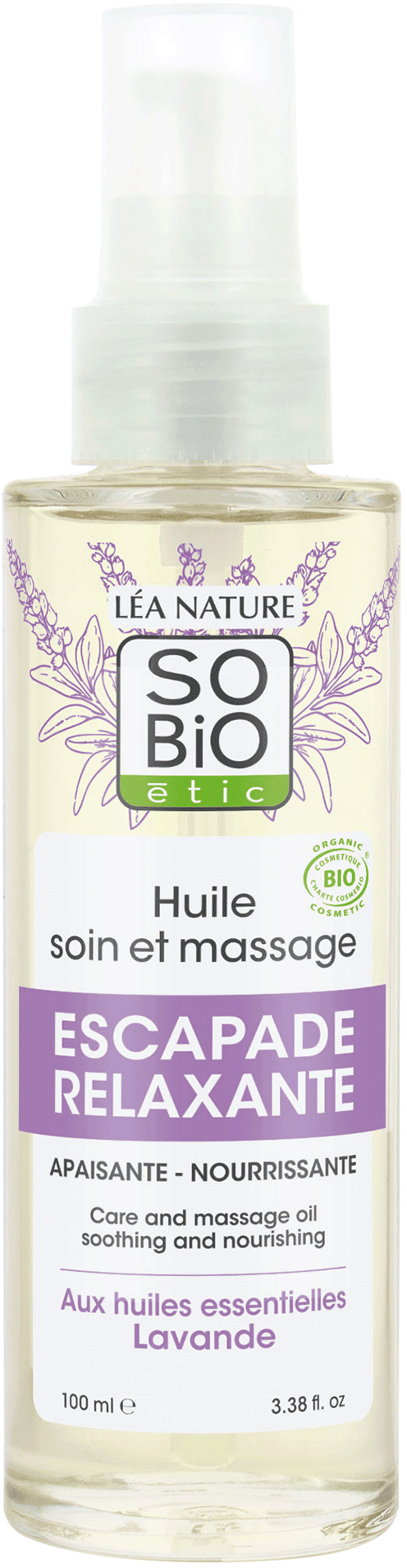 Това масло за грижа и масаж с лавандула, с цветен и характерен аромат, се абсорбира бързо и оставя кожата еластична, подхранена и мека. То е идеално за намиране на спокойствие и обгръща тялото и ума с усещане за пълнота.