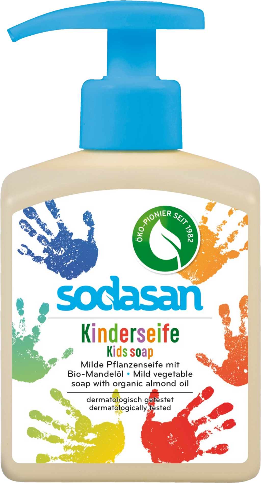 Нежната формула на детския сапун почиства внимателно, а маслата от маслина и бадем осигуряват меко и приятно усещане. Деликатният плодов аромат е любим на децата, а цветният дизайн прави миенето на ръце още по-забавно.