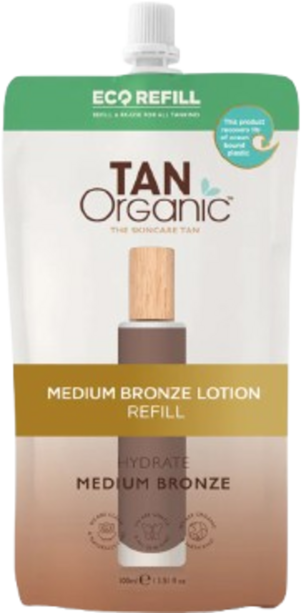 Насладете се на екологичен начин за презареждане на любимия си самозапалващ се крем. С калъфчето за зареждане Tan Organic можете да зареждате, да използвате повторно и да намалите пластмасовите отпадъци. Всяка торбичка за зареждане съдържа еквивалента на две бутилки лосион за самозапалване за дълготраен и устойчив блясък. Формулата е с 84% сок от алое вера, който интензивно овлажнява и оставя кожата хидратирана и подхранена. Резултатът е естествено изглеждащ, равномерен бронзов тон без неприятни миризми, обезцветяване или сухи участъци.
