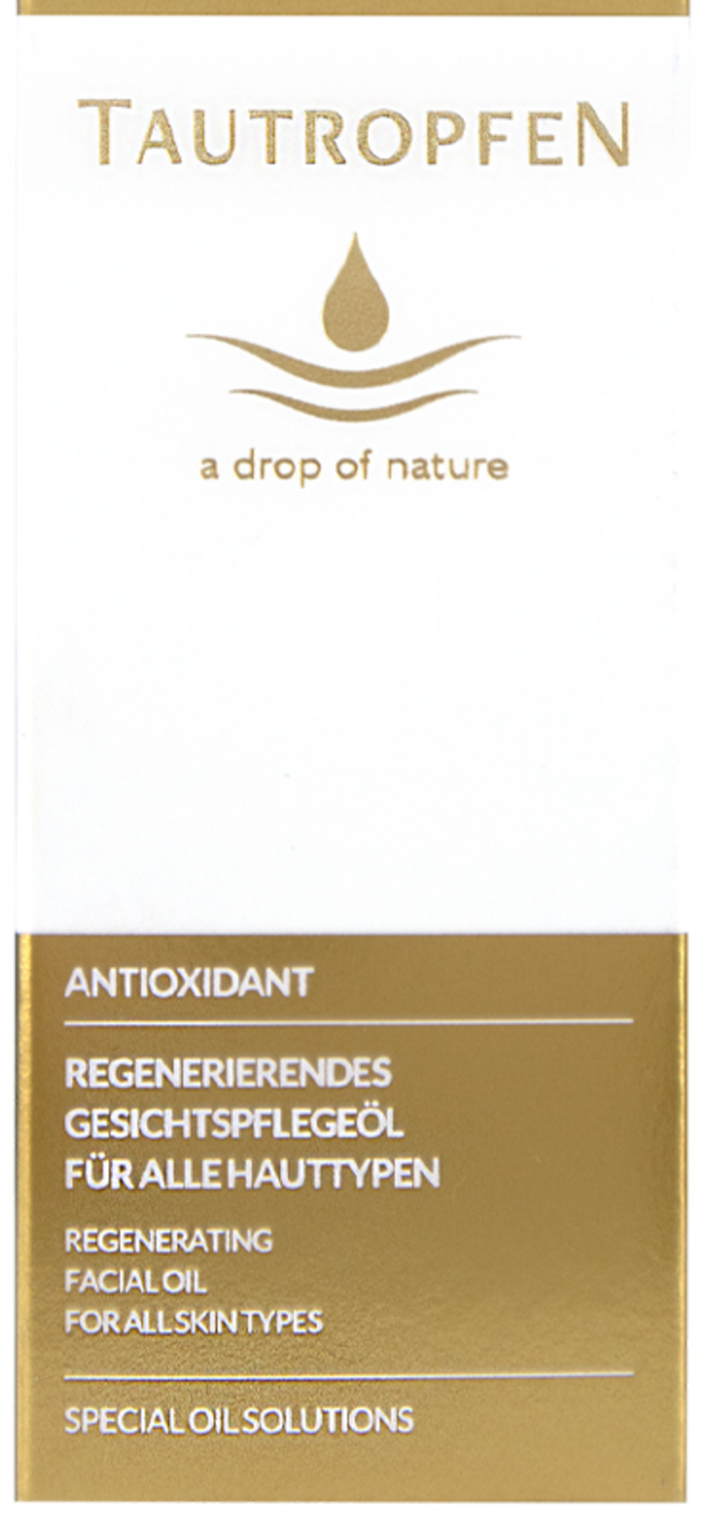 Това скъпоценно масло за грижа за лицето от TAUTROPFEN съдържа ценни растителни масла от нар, амарант, семена от шипка и бадеми, които осигуряват кадифена еластичност, хидратират кожата и насърчават обновяването на клетките. Освен това, благодарение на подбраните съставки, като коензим Q10 и RosamoxTM , продуктът има антиоксидантен ефект и по този начин може да предотврати стареенето на кожата, свързано с околната среда.