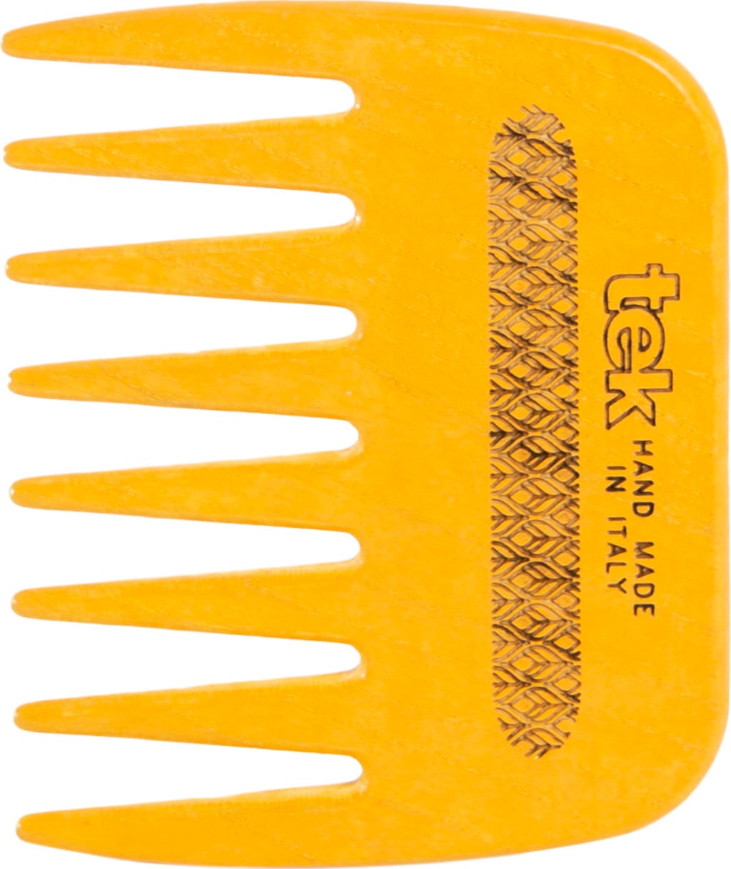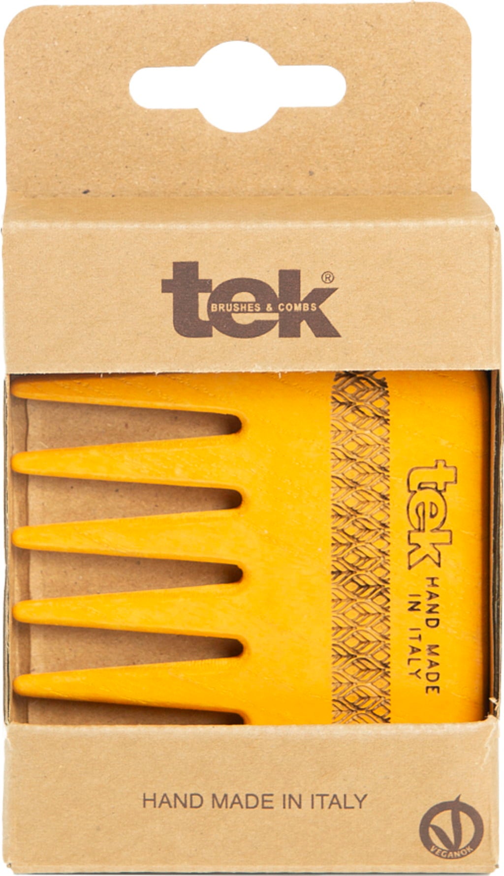 Едрият гребен за къдрава коса от tek е идеален за разплитане на гъста, вълниста и много къдрава коса. Изработен е от ясен и е обработен с ленено масло и карнаубски восък. Гребенът разплита възлите, без да скуби или да поврежда косъма. Освен това, косата не се електризира при разресване.