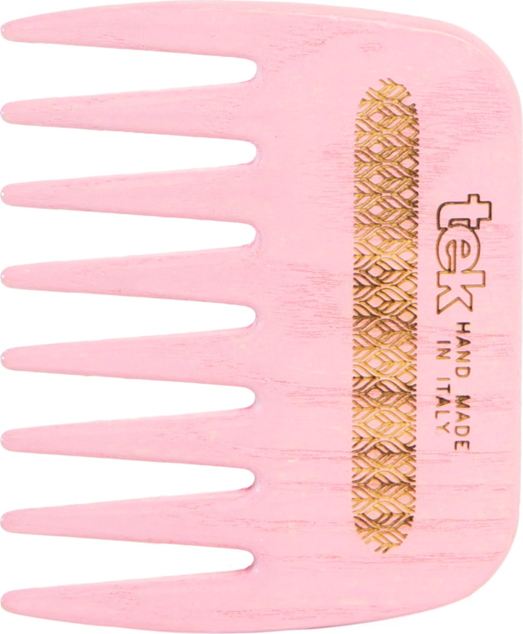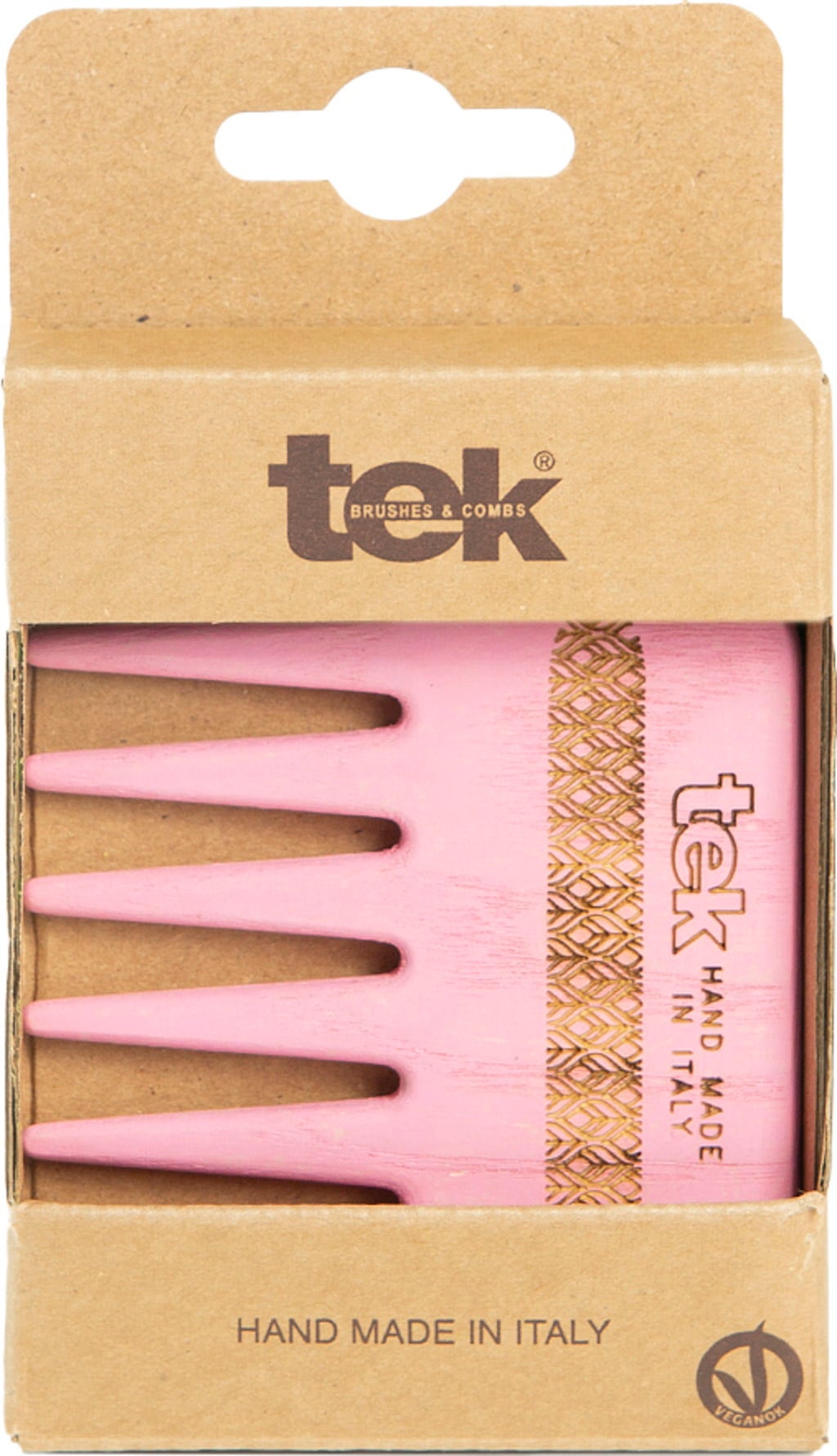 Едрият гребен за къдрава коса от tek е идеален за разплитане на гъста, вълниста и много къдрава коса. Изработен е от ясен и е обработен с ленено масло и карнаубски восък. Гребенът разплита възлите, без да скуби или да поврежда косъма. Освен това, косата не се електризира при разресване.