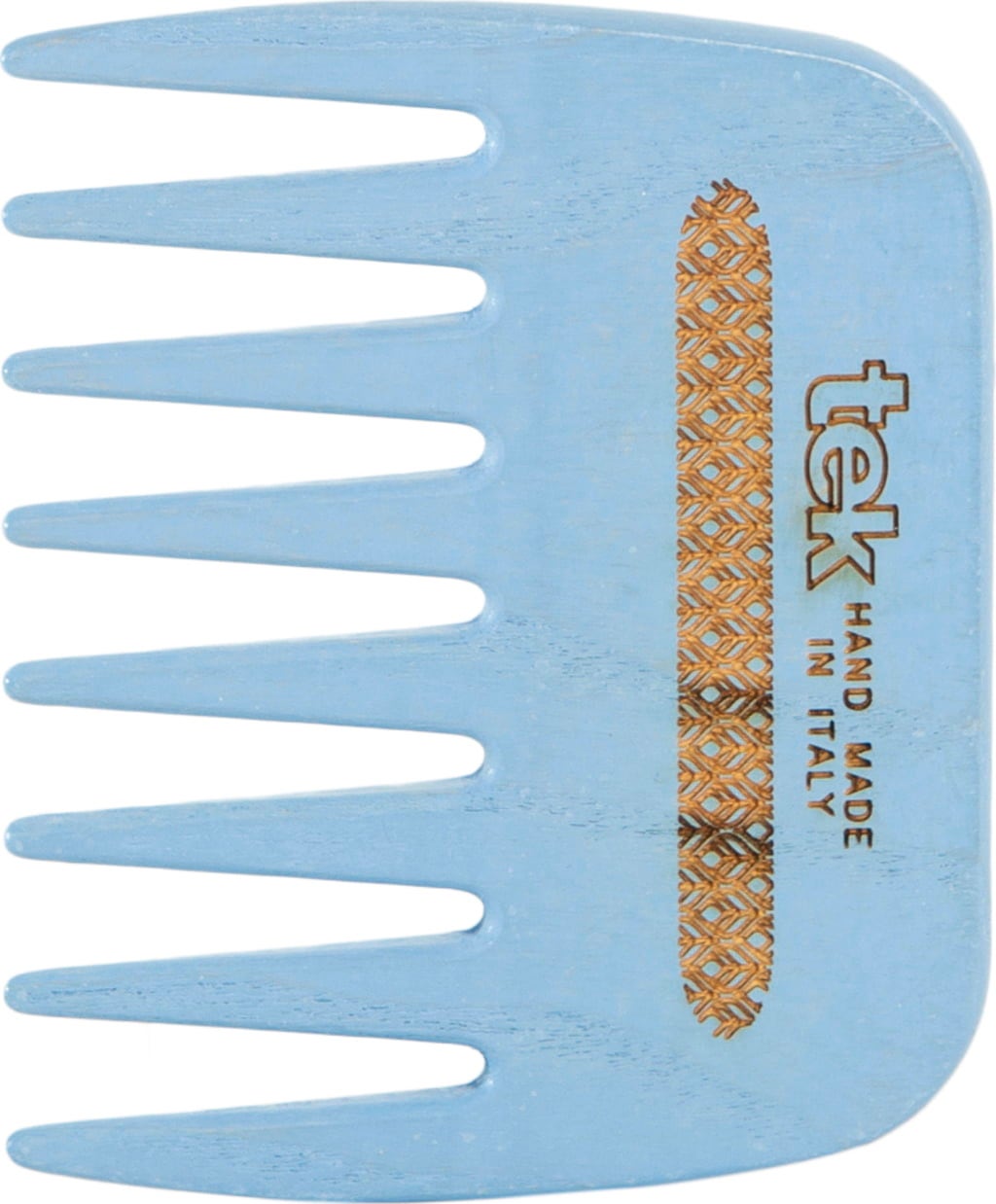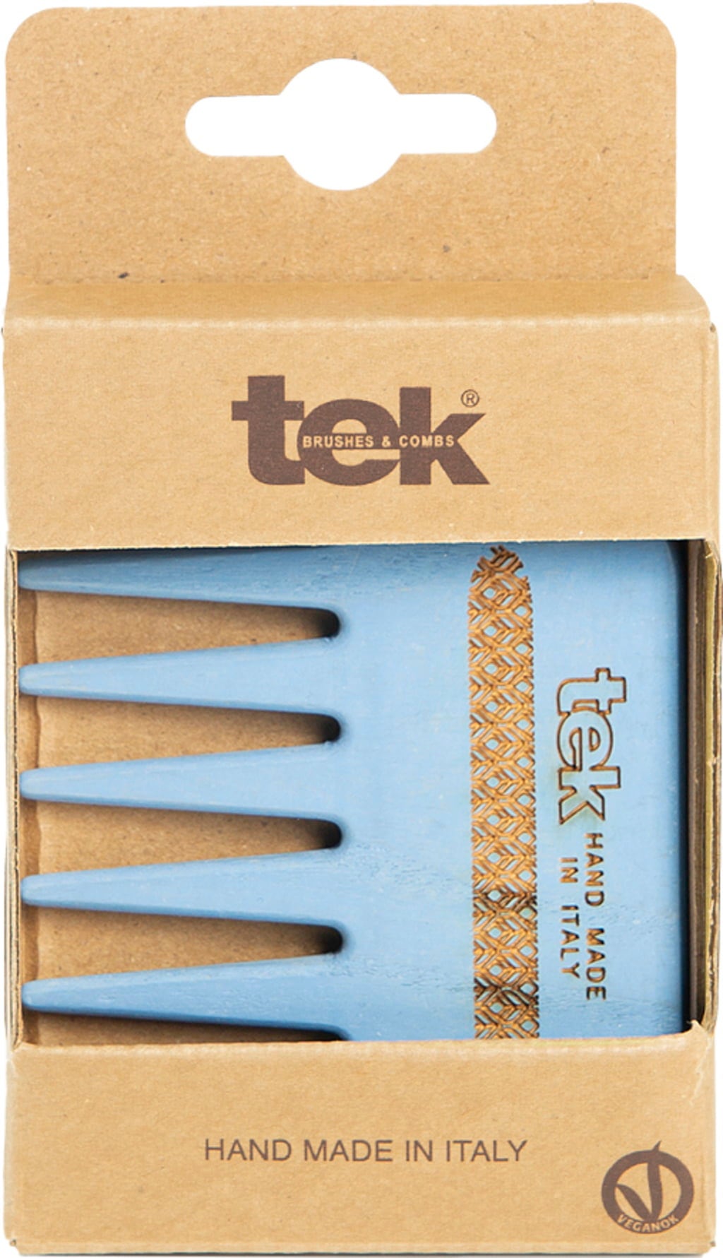 Едрият гребен за къдрава коса от tek е идеален за разплитане на гъста, вълниста и много къдрава коса. Изработен е от ясен и е обработен с ленено масло и карнаубски восък. Гребенът разплита възлите, без да скуби или да поврежда косъма. Освен това, косата не се електризира при разресване.