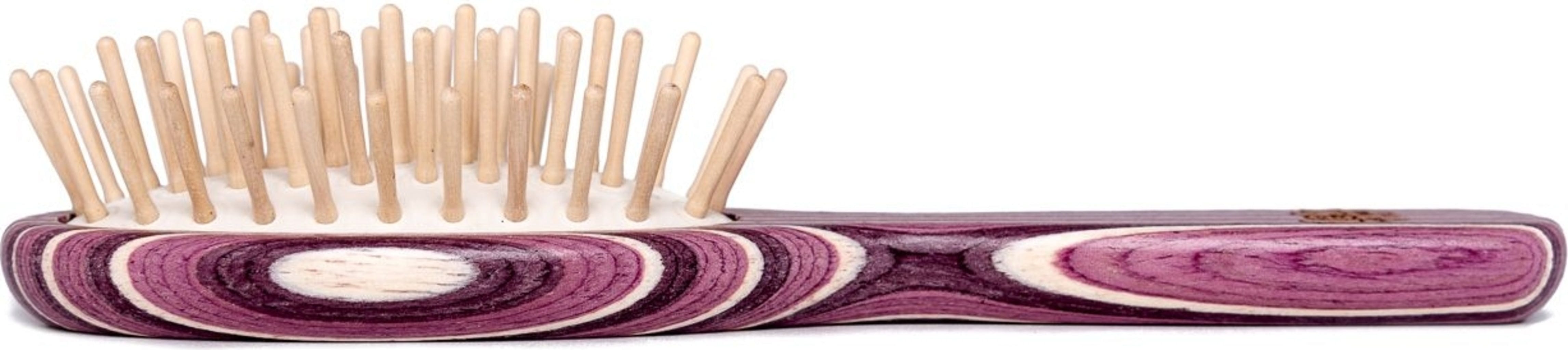 Тази малка, овална четка има къси бодлички, подходящи за всички типове коса. Състои се от дърво от ясен, който е обработен с ленено масло и карнаубски восък. Бодличките са направени от габър и са залепени във въздушна възглавница от естествен каучук. Косата е оптимално и приятно разресана, без електростатично зареждане.