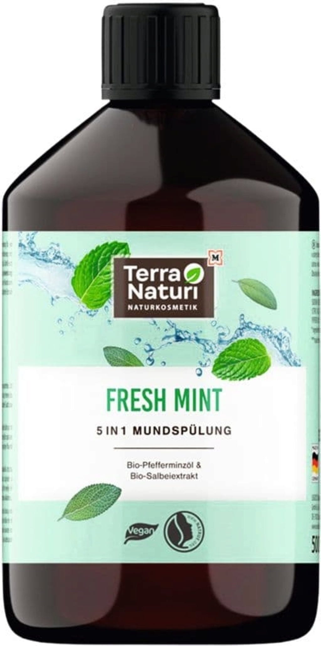 С водата за уста FRESH MINT 5в1 на Terra Naturi ще получите незабавно усещане за чистота в устата си и дълготраен свеж дъх. Водата за уста е обогатена с подхранващ органичен екстракт от градински чай и органично масло от мента.