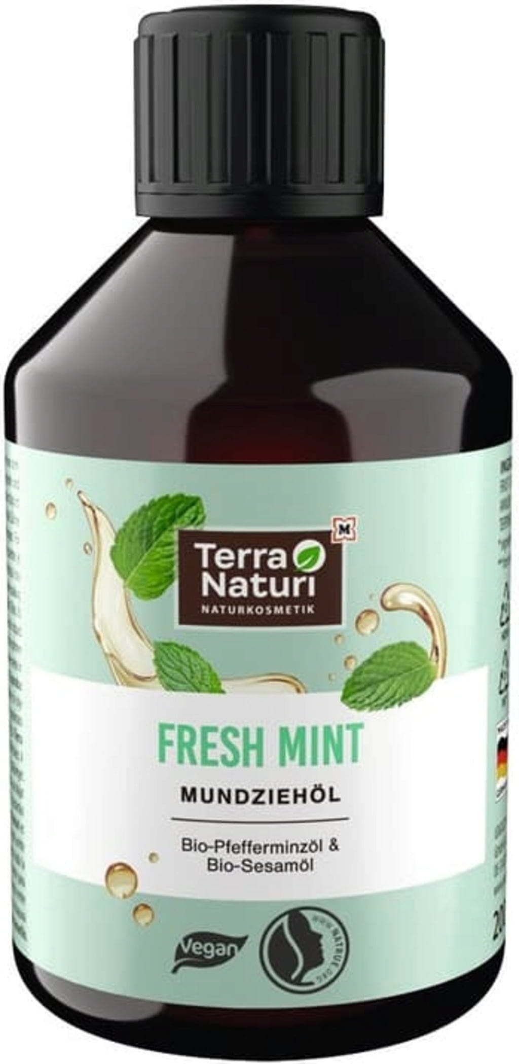 Водата за уста с масло FRESH MINT на Terra Naturi е идеална за ежедневно извличане на масло преди миене на зъбите. Обогатена е с органична мента и органично сусамово масло и осигурява освежаващо усещане в устата.