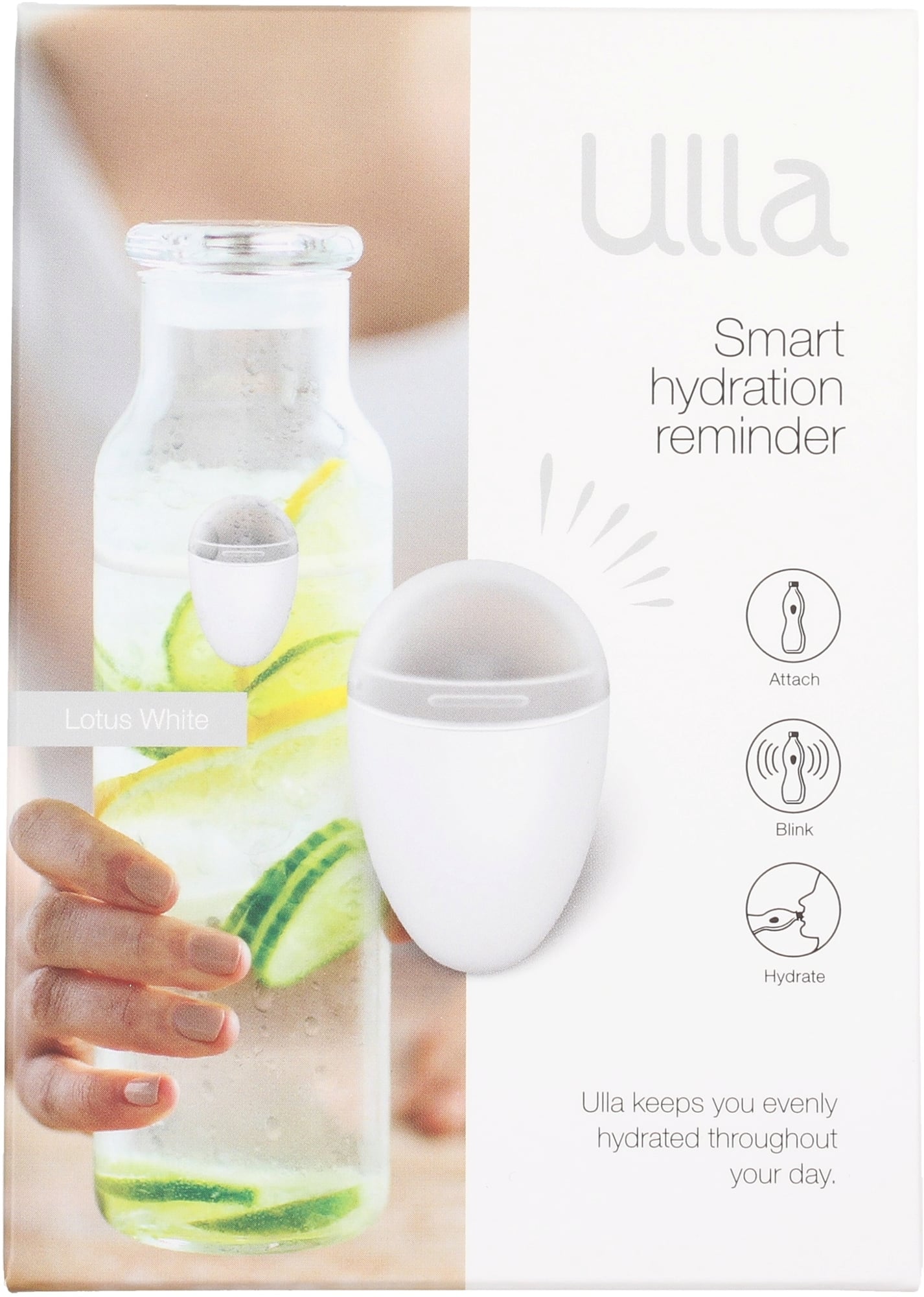 Чрез оптималния цикъл на хидратация на Ulla вашите навици за пиене ще се подобрят драстично. Тъй като водата и пиенето са важни за здравето. Ulla винаги е там, но без да пречи!