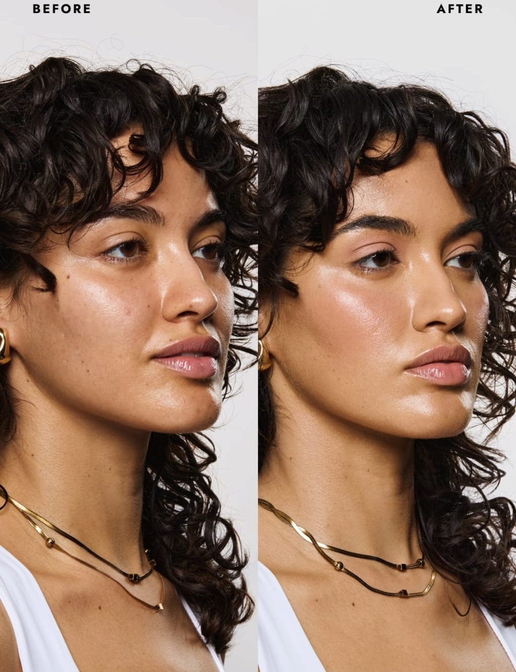 - Нанасяне: Разклатете добре. Нанесете 1–2 помпи върху ръката и разнесете с пръсти или четка от центъра на лицето навън. Може да използвате и блендер.