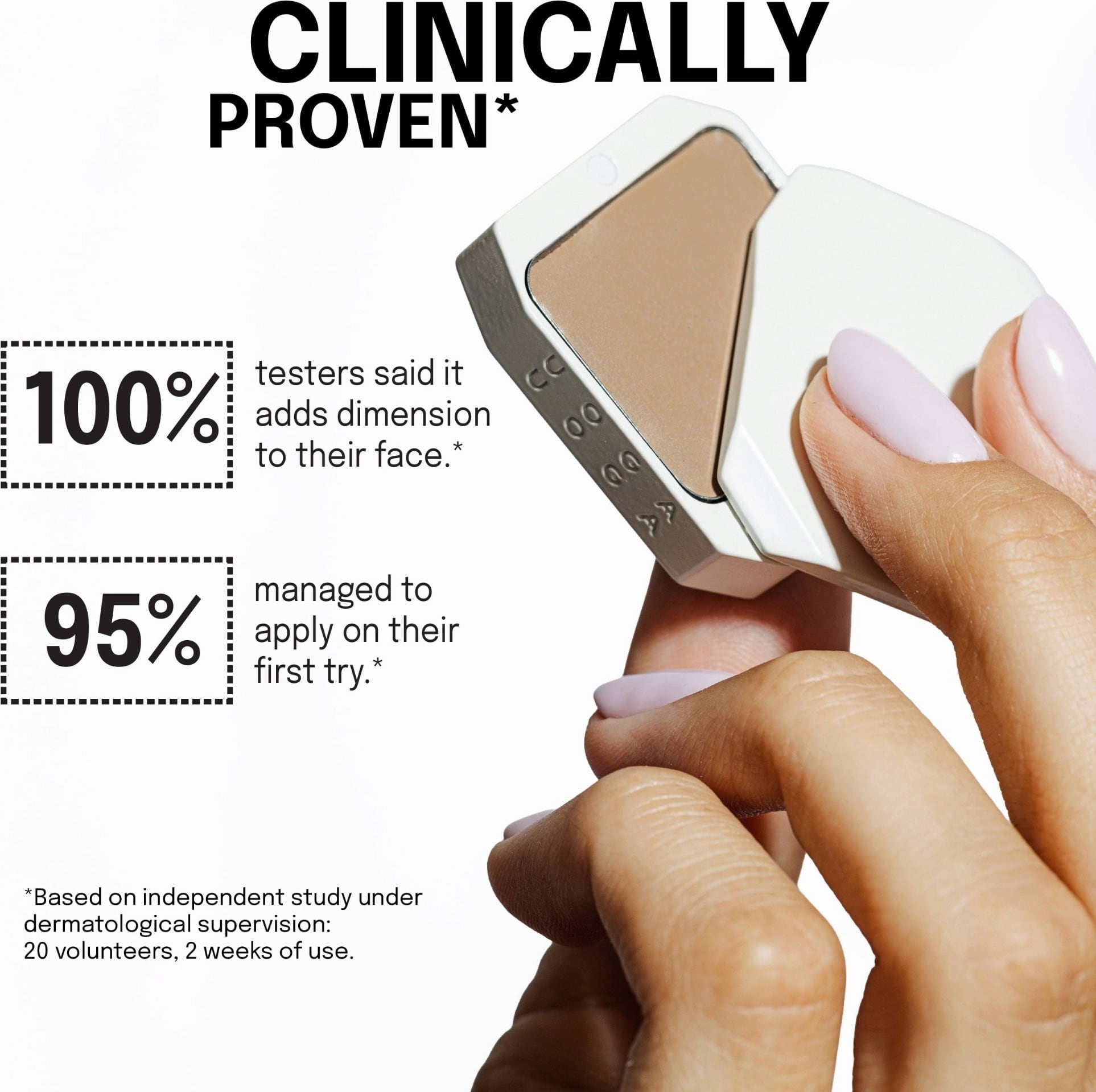 - Използвайте продукта, за да очертаете контурите на лицето, скулите, очите и носа или ключицата.