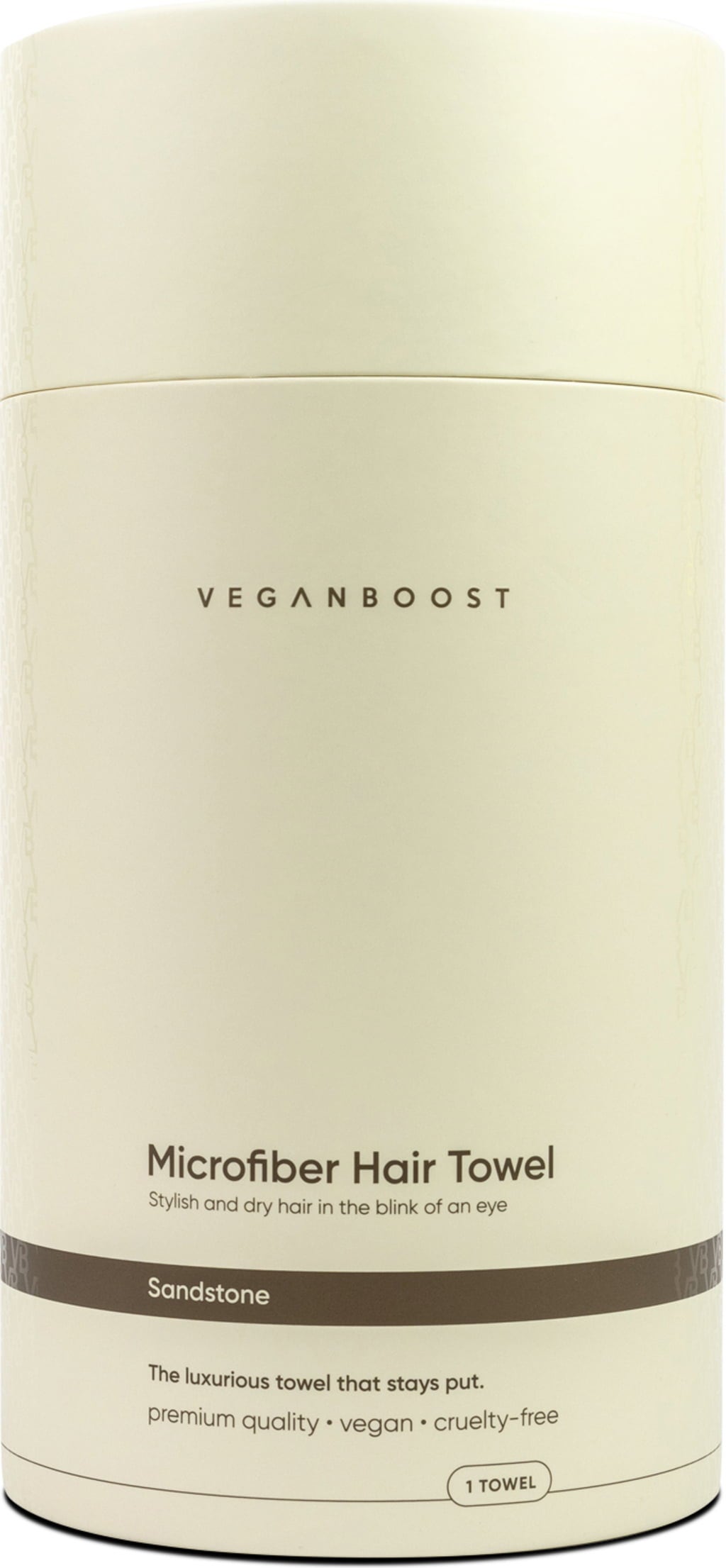 Кърпата за коса Veganboost е изработена от микрофибър, който изсушава косата бързо и ефективно. Сместа от полиестер и полиамид прави кърпата особено мека и намалява триенето, като предпазва косата от увреждане. Благодарение на приставката в задната част на главата, кърпата може лесно да се навие на руло и да се закрепи като тюрбан.