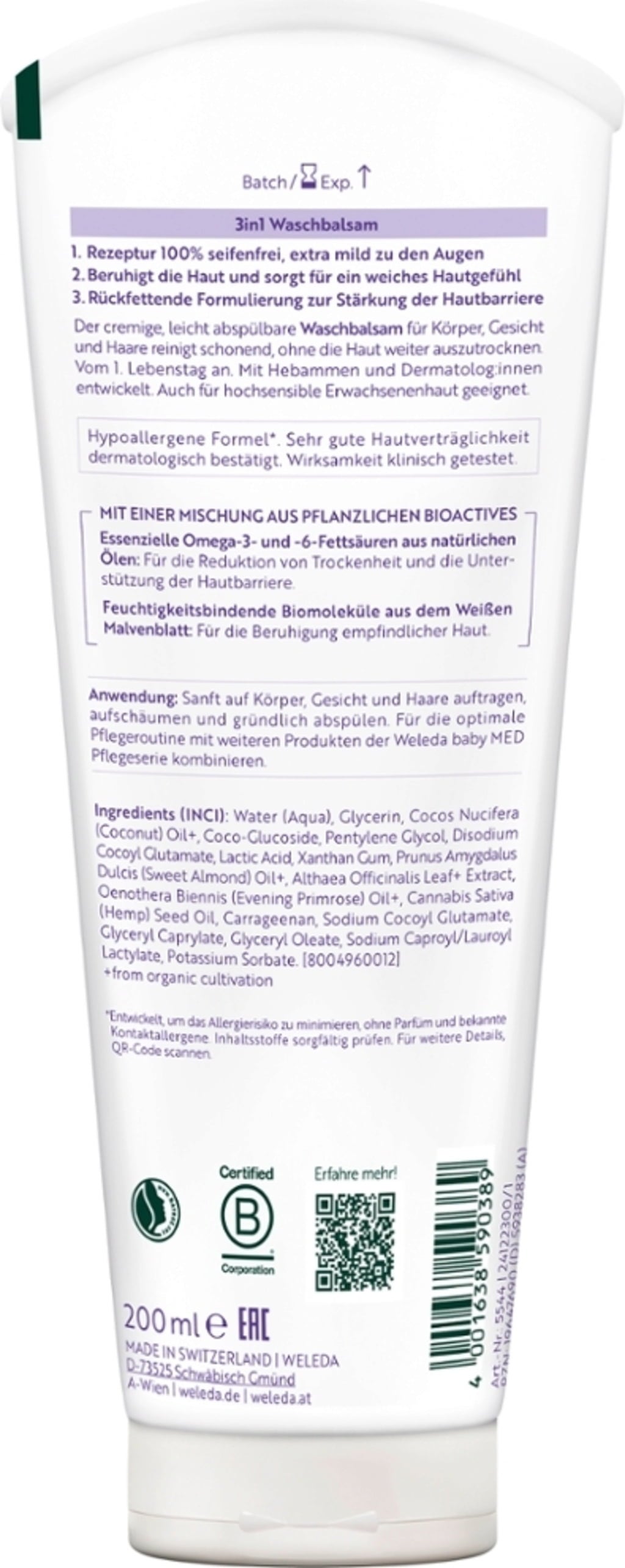 Weleda baby MED 3в1 измиващ балсам, 200 мл