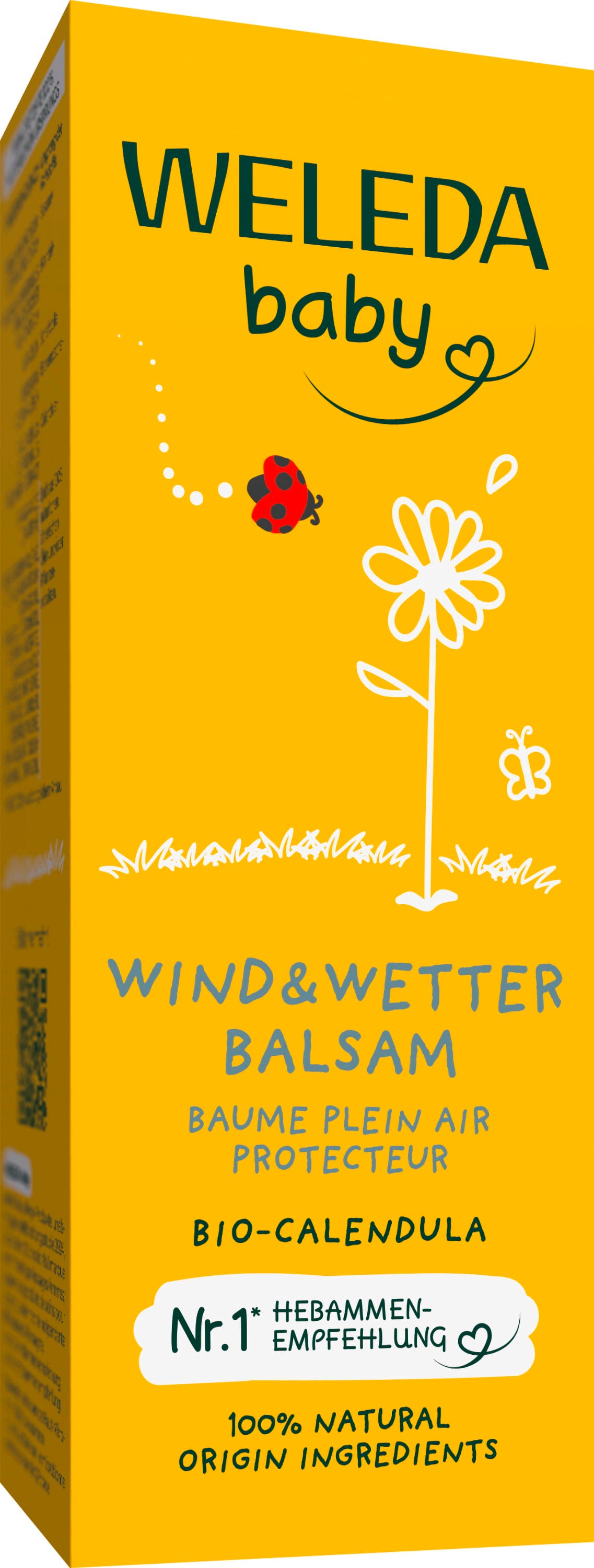 Когато излизате навън при дъжд или сняг, кожата се на бебето и детето се нуждае от особено интензивна защита. Weleda Балсам за студ и вятър с нар предпазва надеждно нежната кожа на лицето и малките ръце от студ, вятър и лошо време. Чист пчелен восък и дървесен восък осигуряват естествена защитна бариера за кожата, без да пречат на кожата да диша. Ценно бадемово масло подхранва и суха, стресирана кожа и я прави мека, а екстракт от био-невен успокоява кожата.